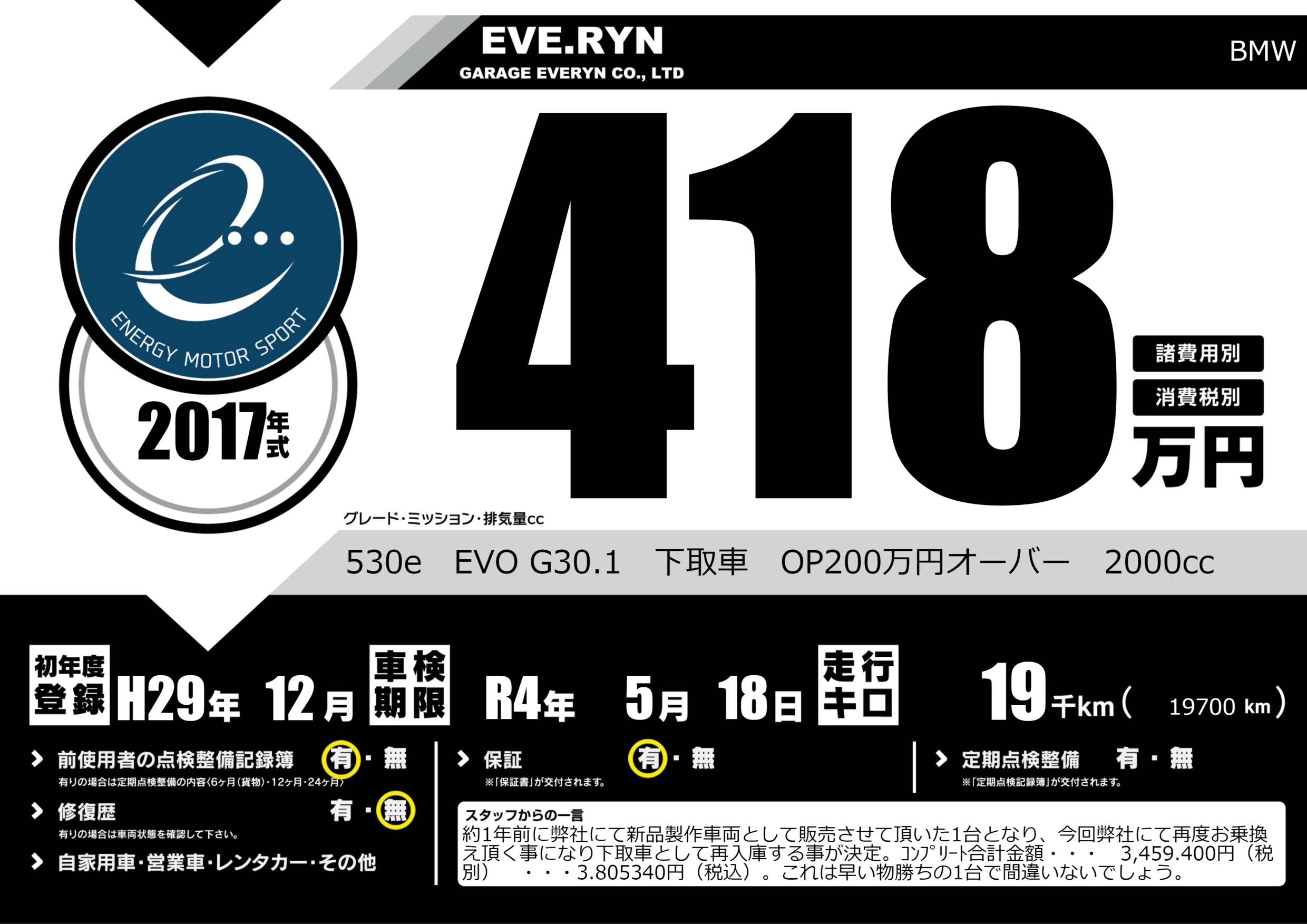 530e EVO G30.1 下取車 OP200万円オーバー 2000cc |