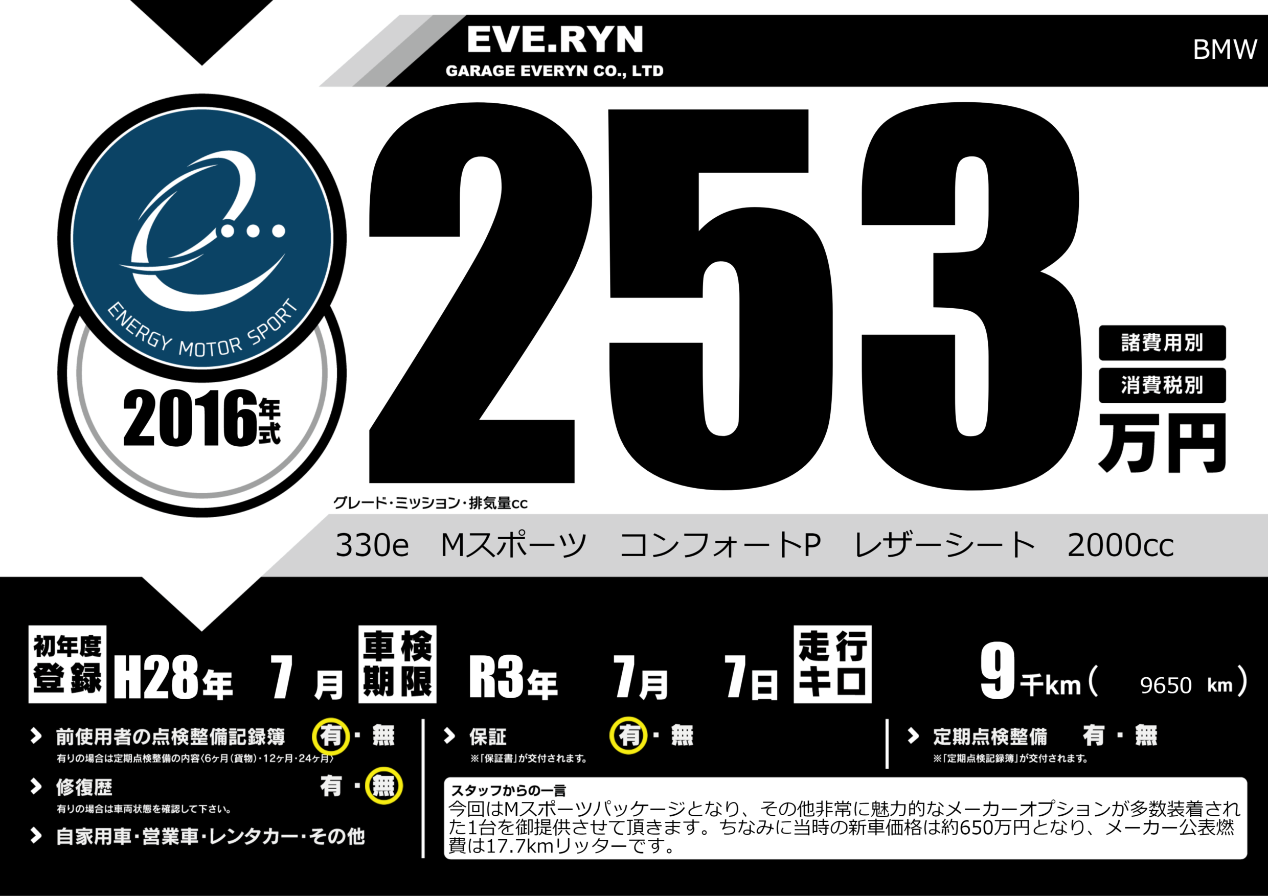 330e Mスポーツ コンフォートP レザーシート 2000cc |