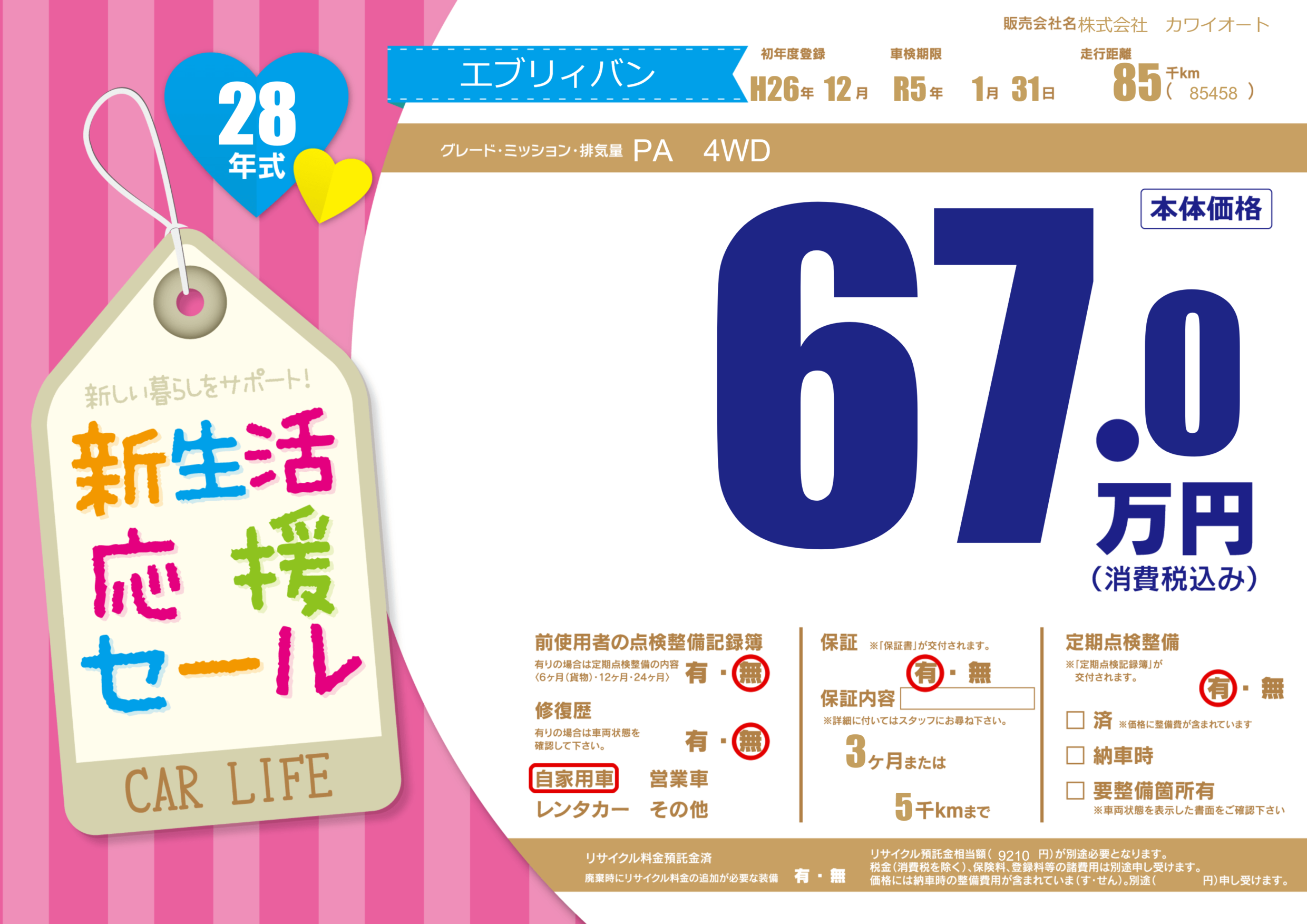 | 車名 | エブリィバン | グレード ミッション 排気量 |