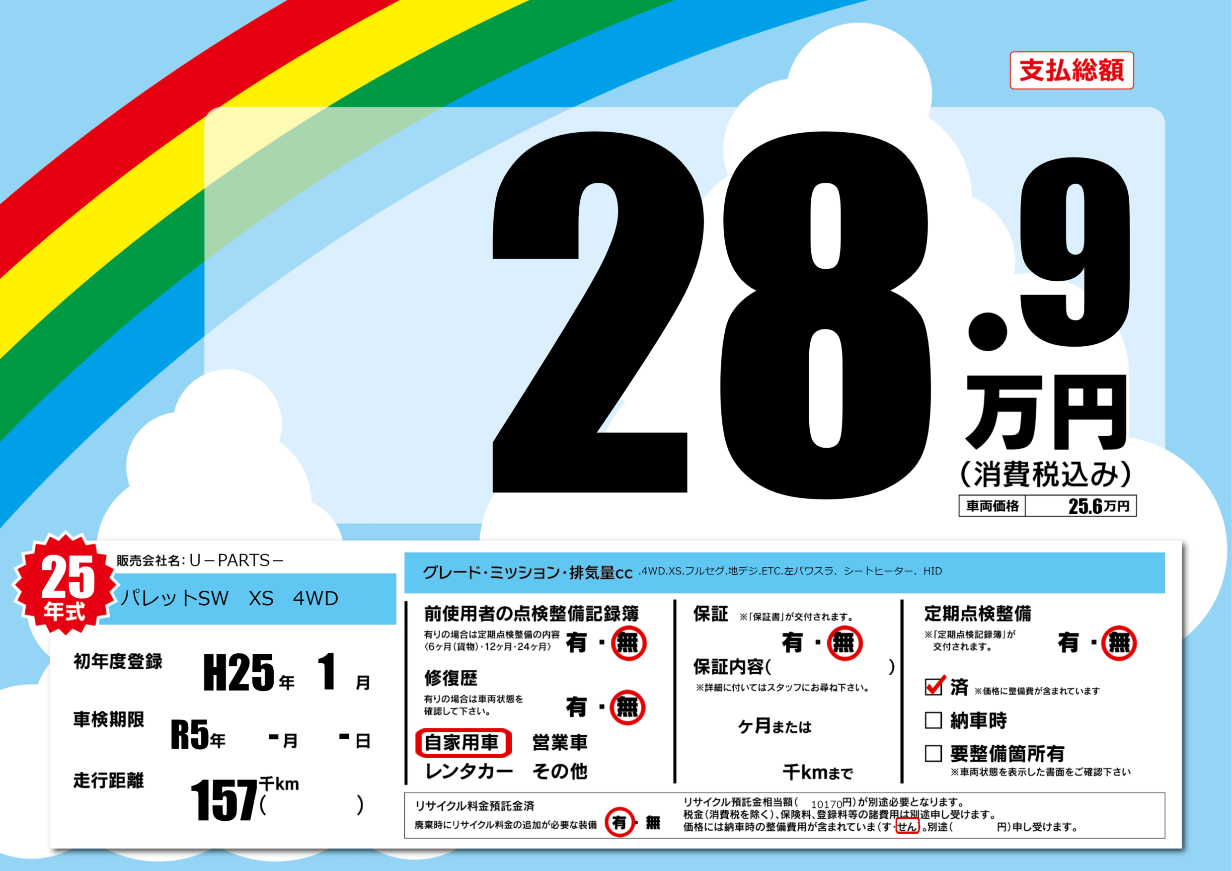 | 車名 | パレットSW XS 4WD | グレード ミッション 排気量 |