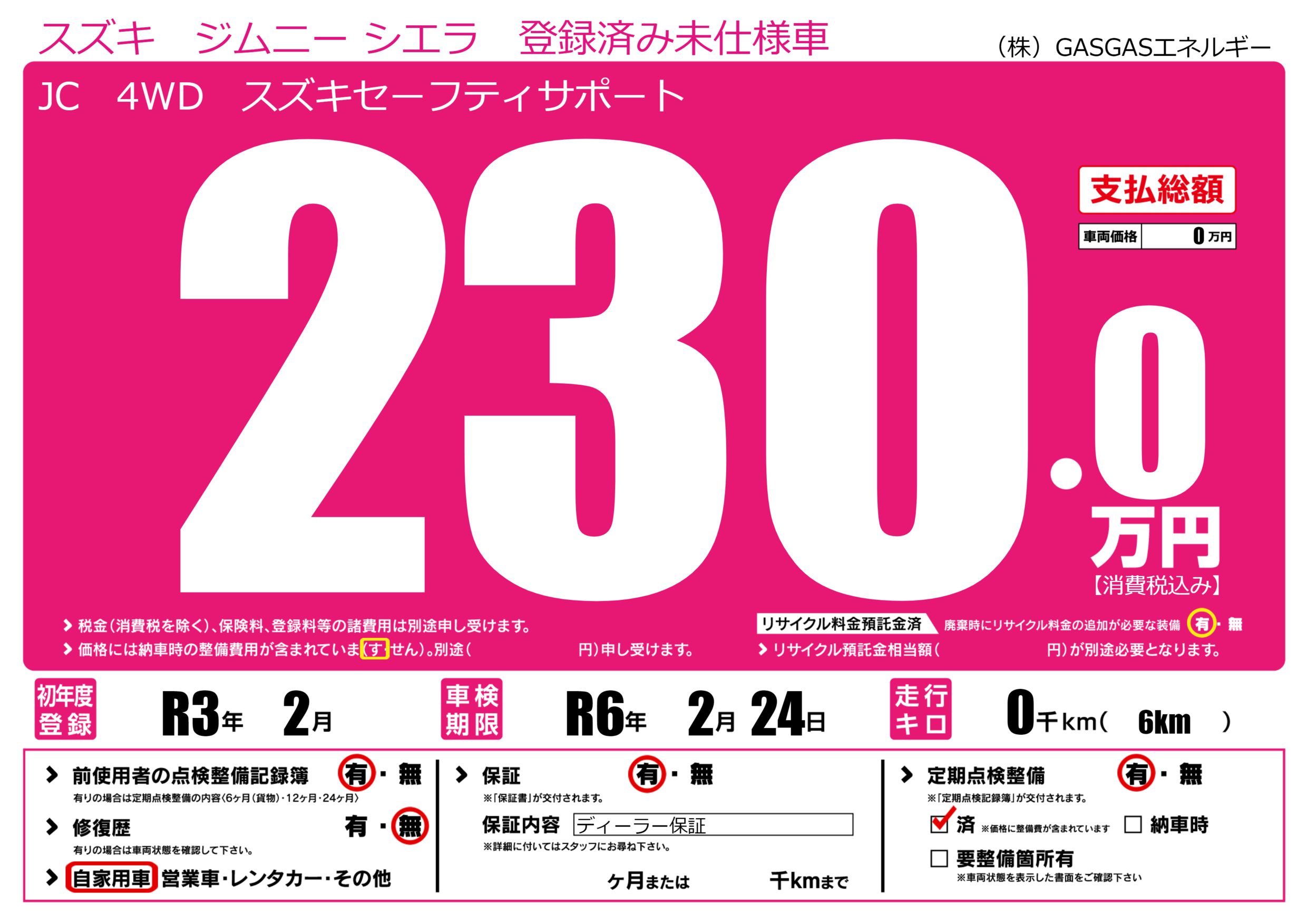 | 定期点検整備 | 定期点検整備あり 定期点検整備済み | ||