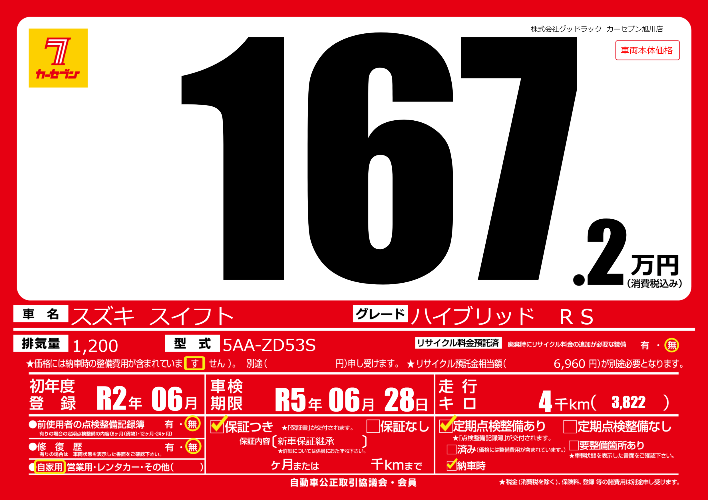 | 車検制限 | R5年 06月 28日 | ||