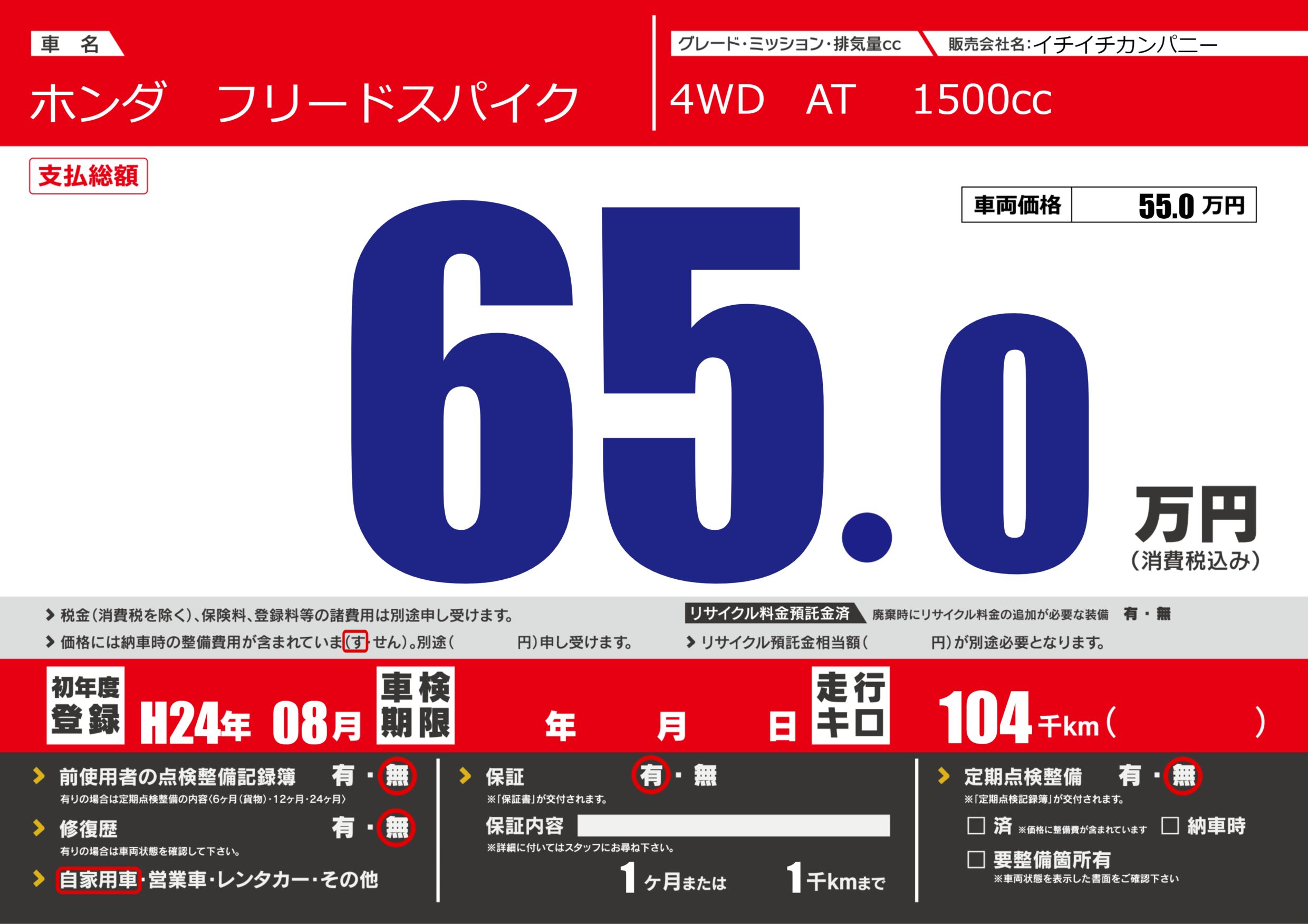 | 定期点検整備 | 定期点検整備なし | ||