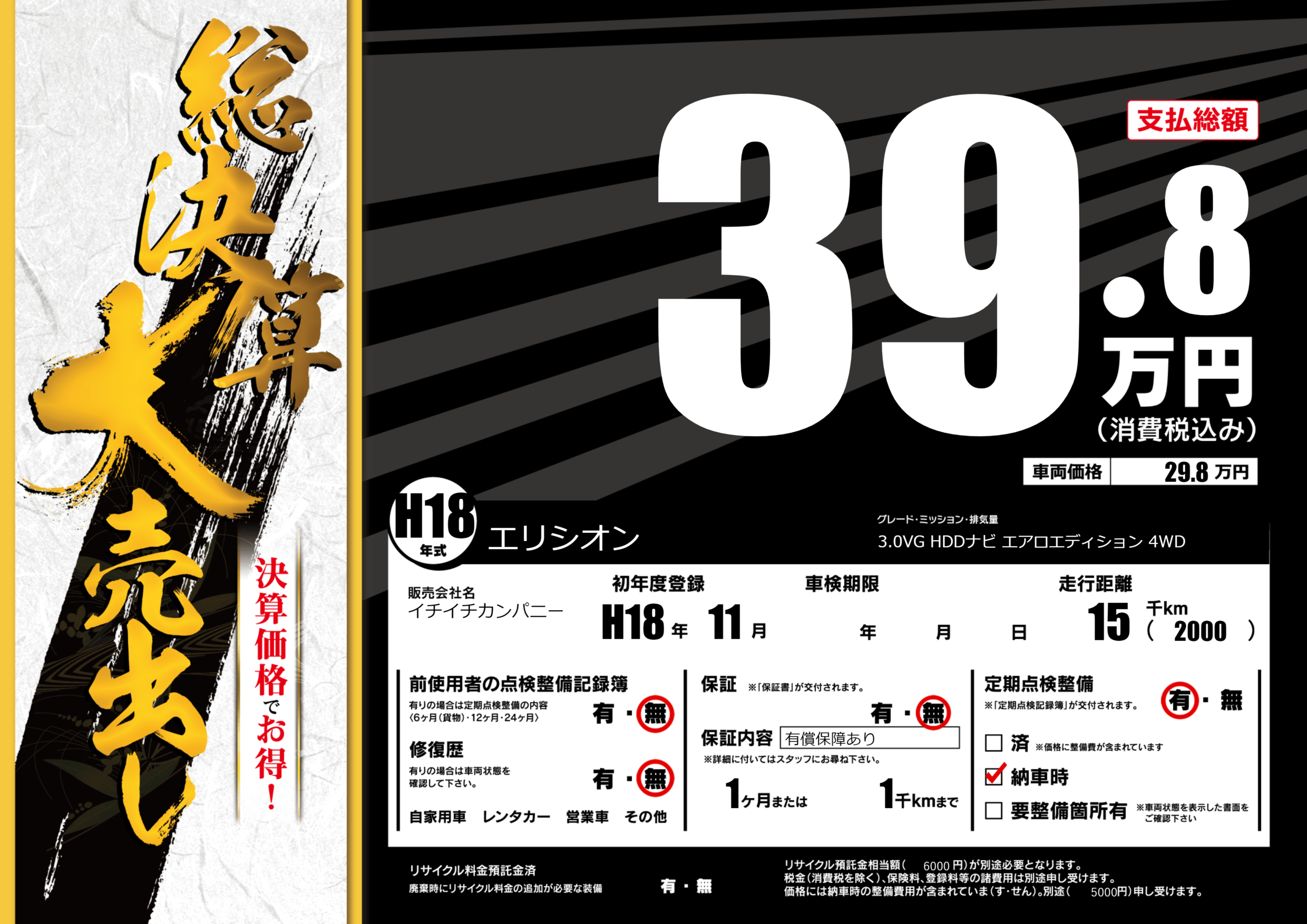 | 定期点検整備 | 定期点検整備あり 納車時あり | ||
