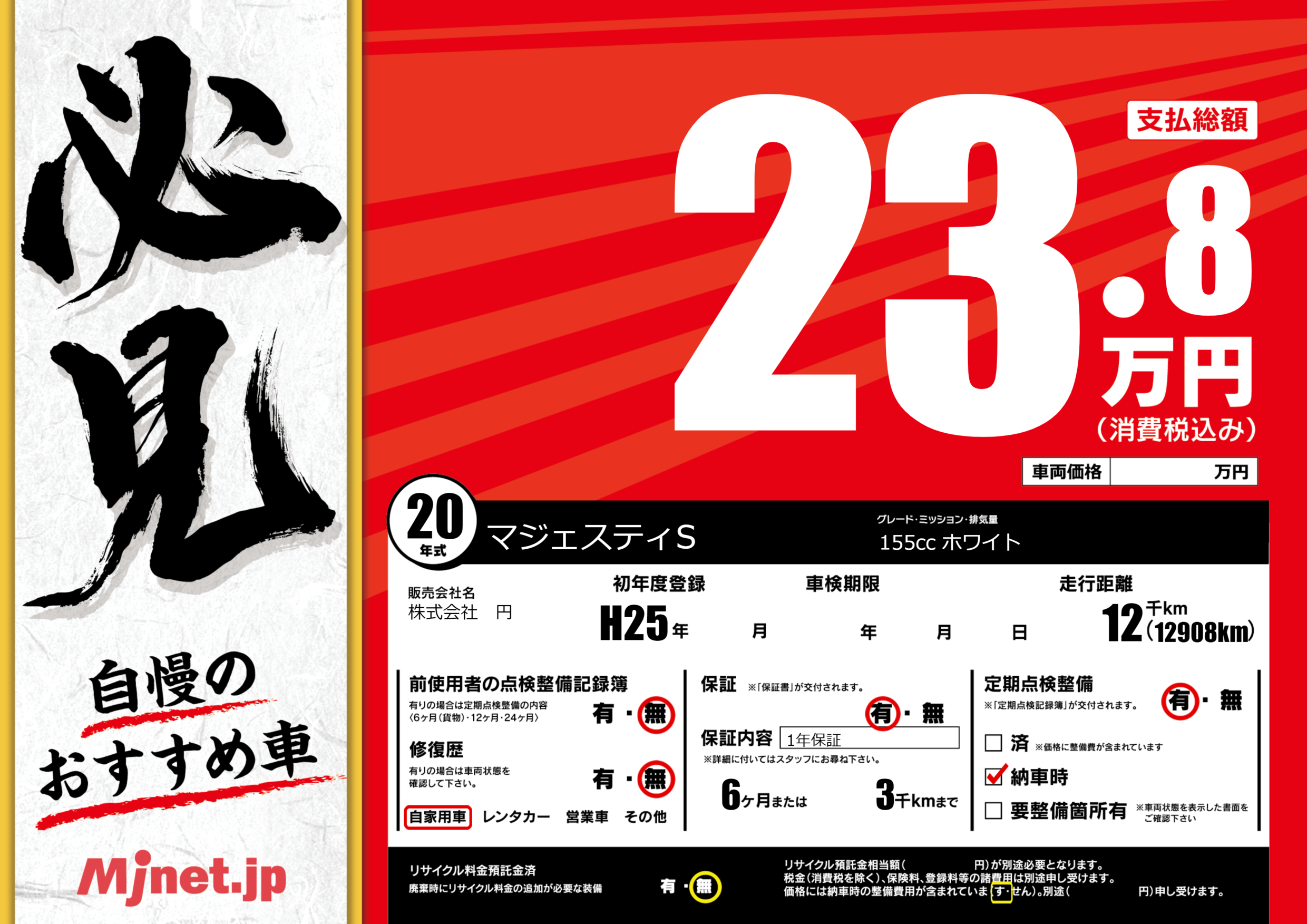 | 車名 | マジェスティS | グレード ミッション 排気量 |