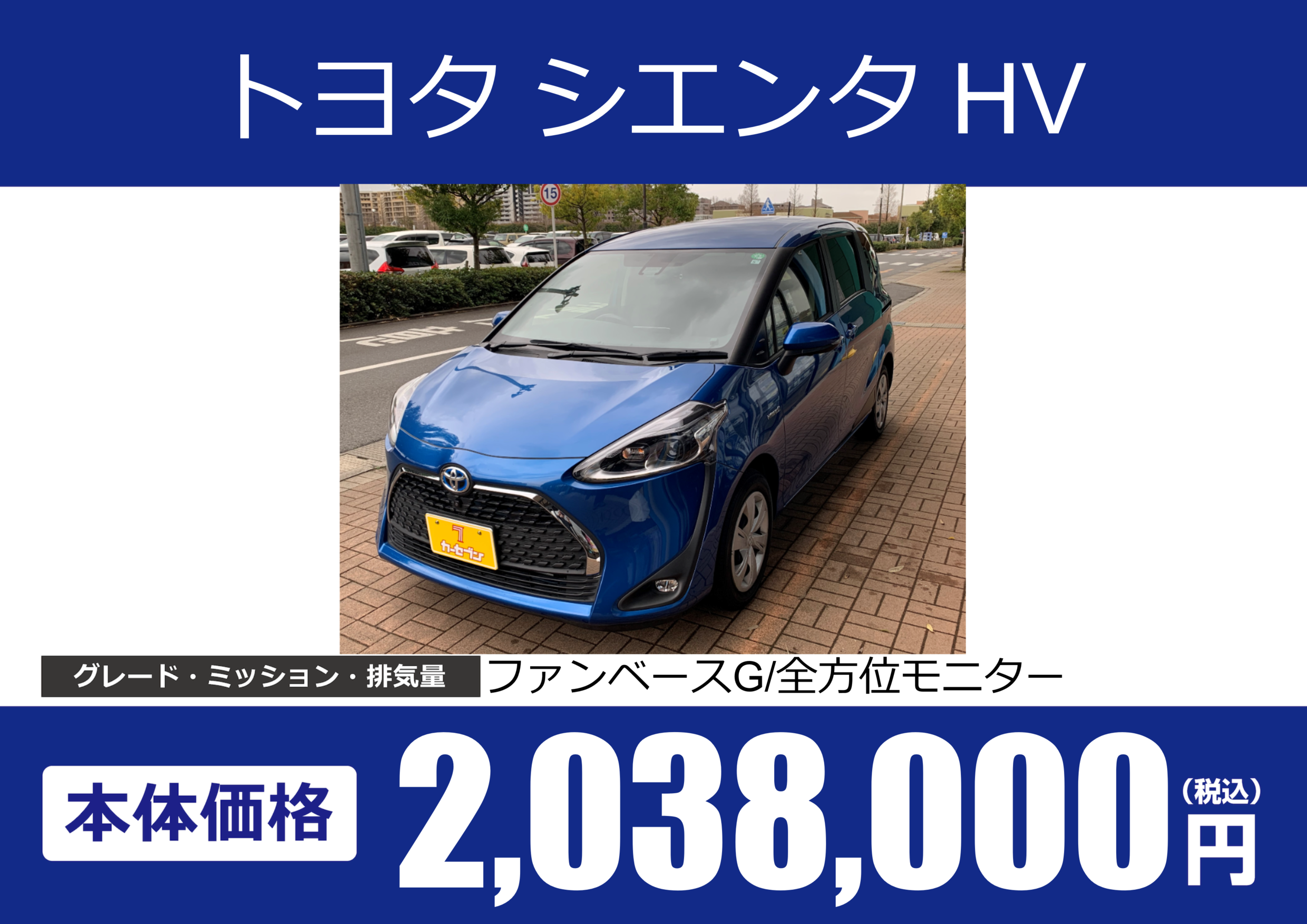 | 車名 | トヨタ シエンタ HV | グレード ミッション 排気量 |