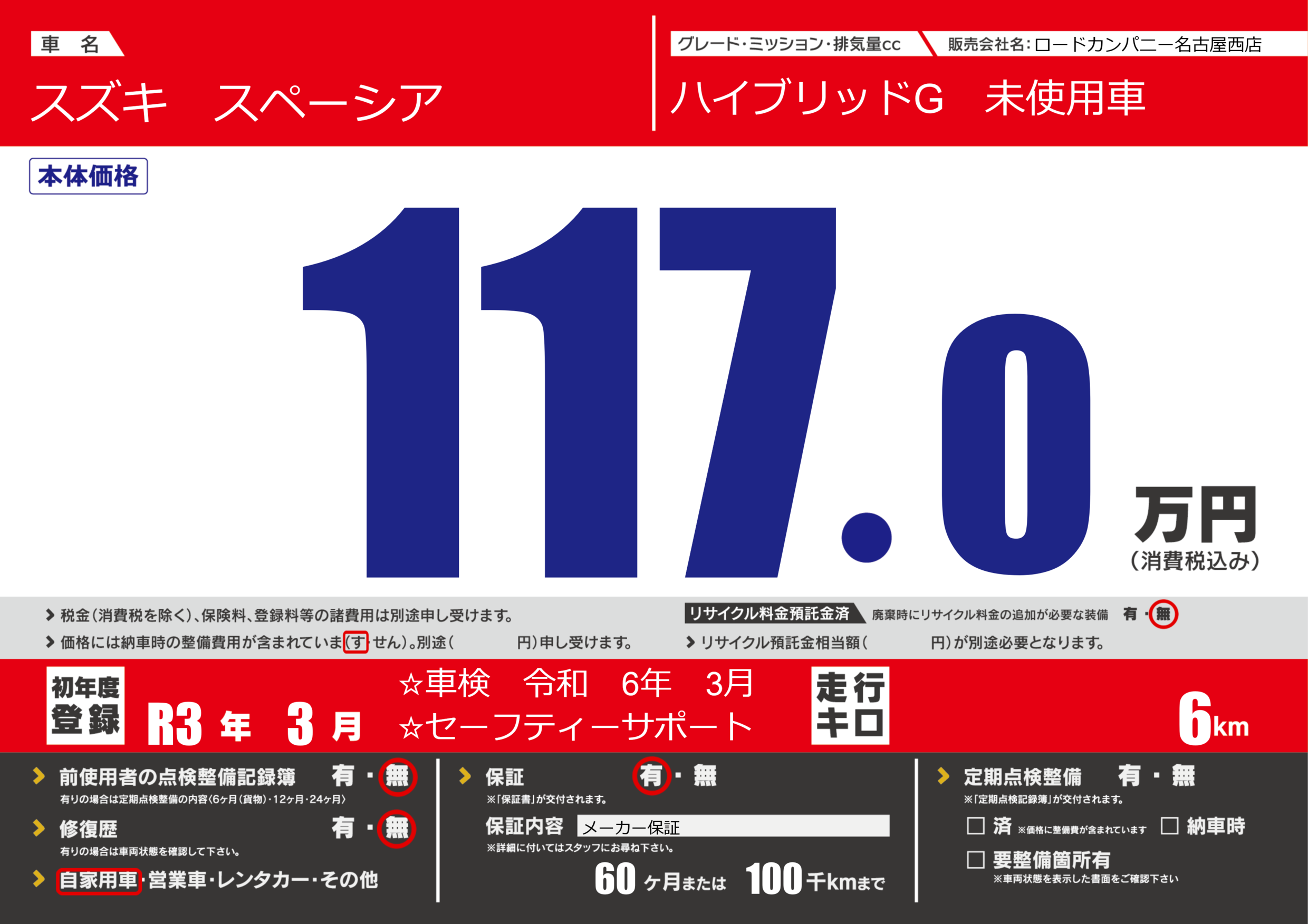 | 走行キロ | 0.6万km | 初年度登録 | R3年3月 |