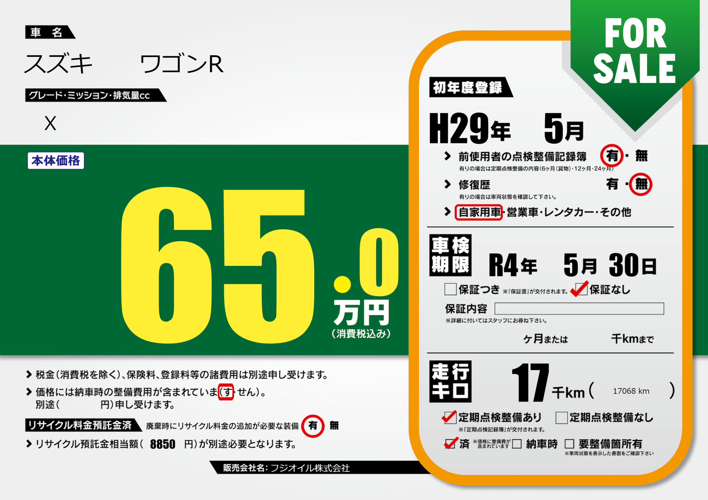 | 定期点検整備 | 定期点検整備あり 定期点検整備済み | ||