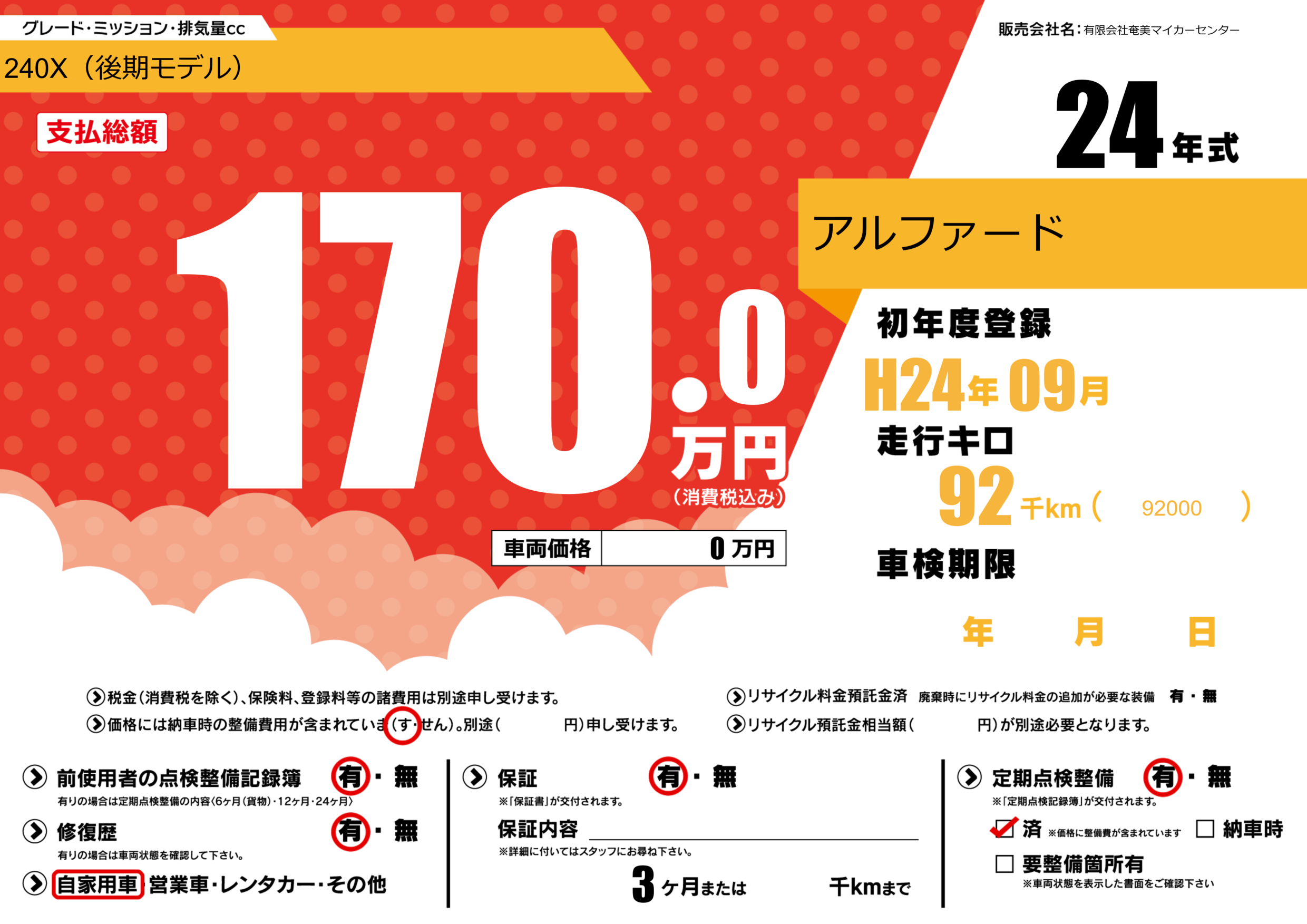 | 定期点検整備 | 定期点検整備あり 定期点検整備済み | ||