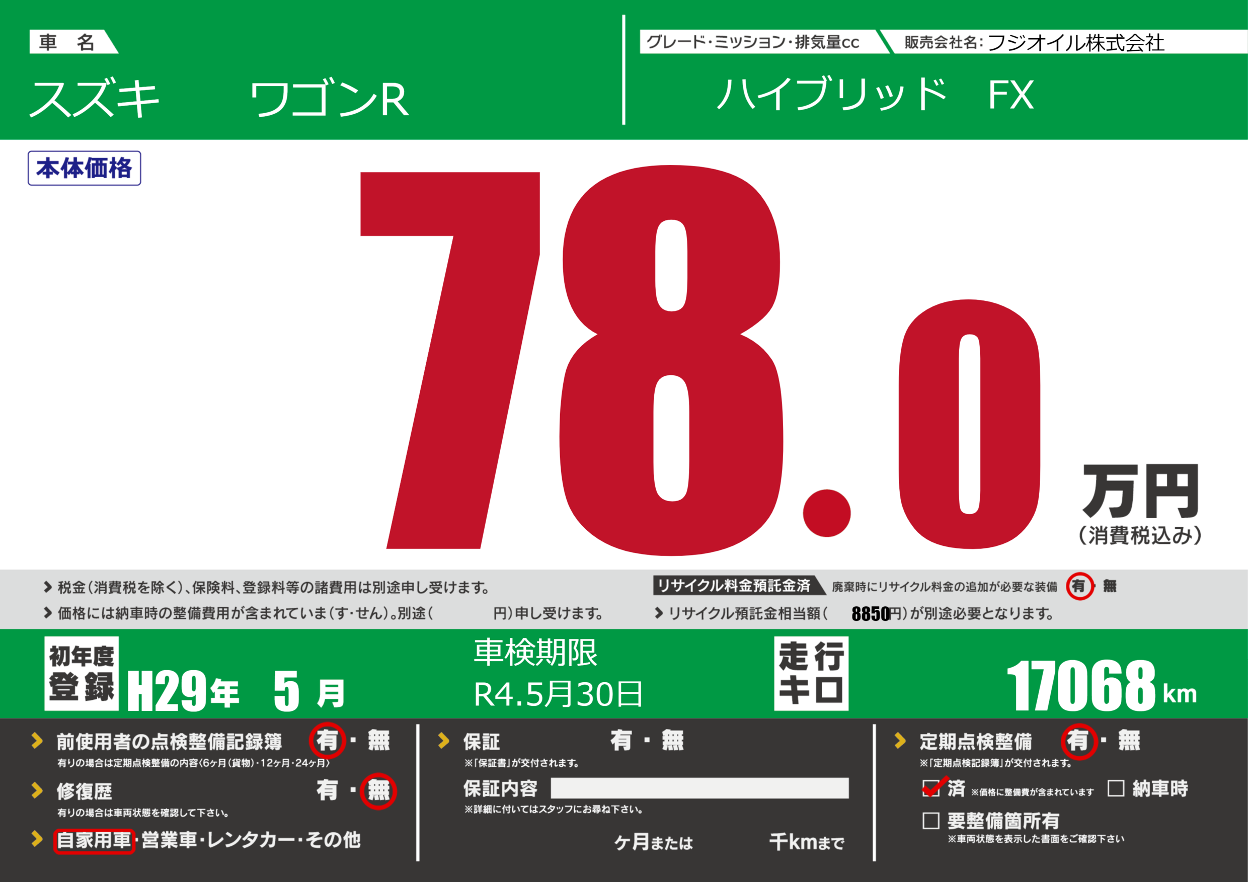 | 定期点検整備 | 定期点検整備あり 定期点検整備済み | ||