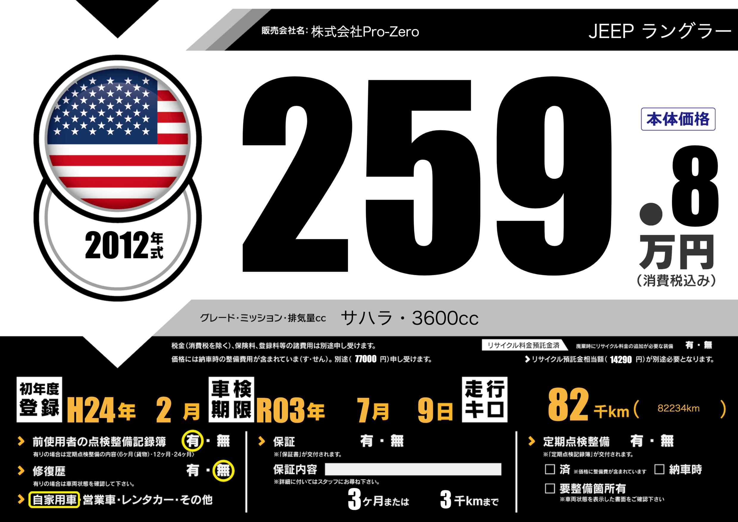 | 車名 | JEEP ラングラー | グレード ミッション 排気量 |