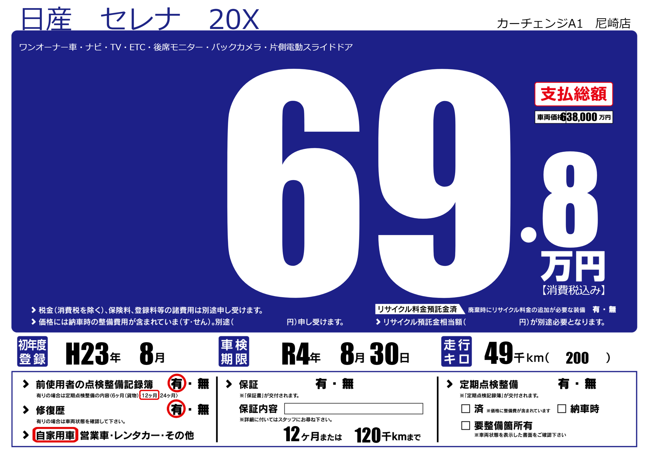 なし | 車検制限 | R4年8月30月 |
