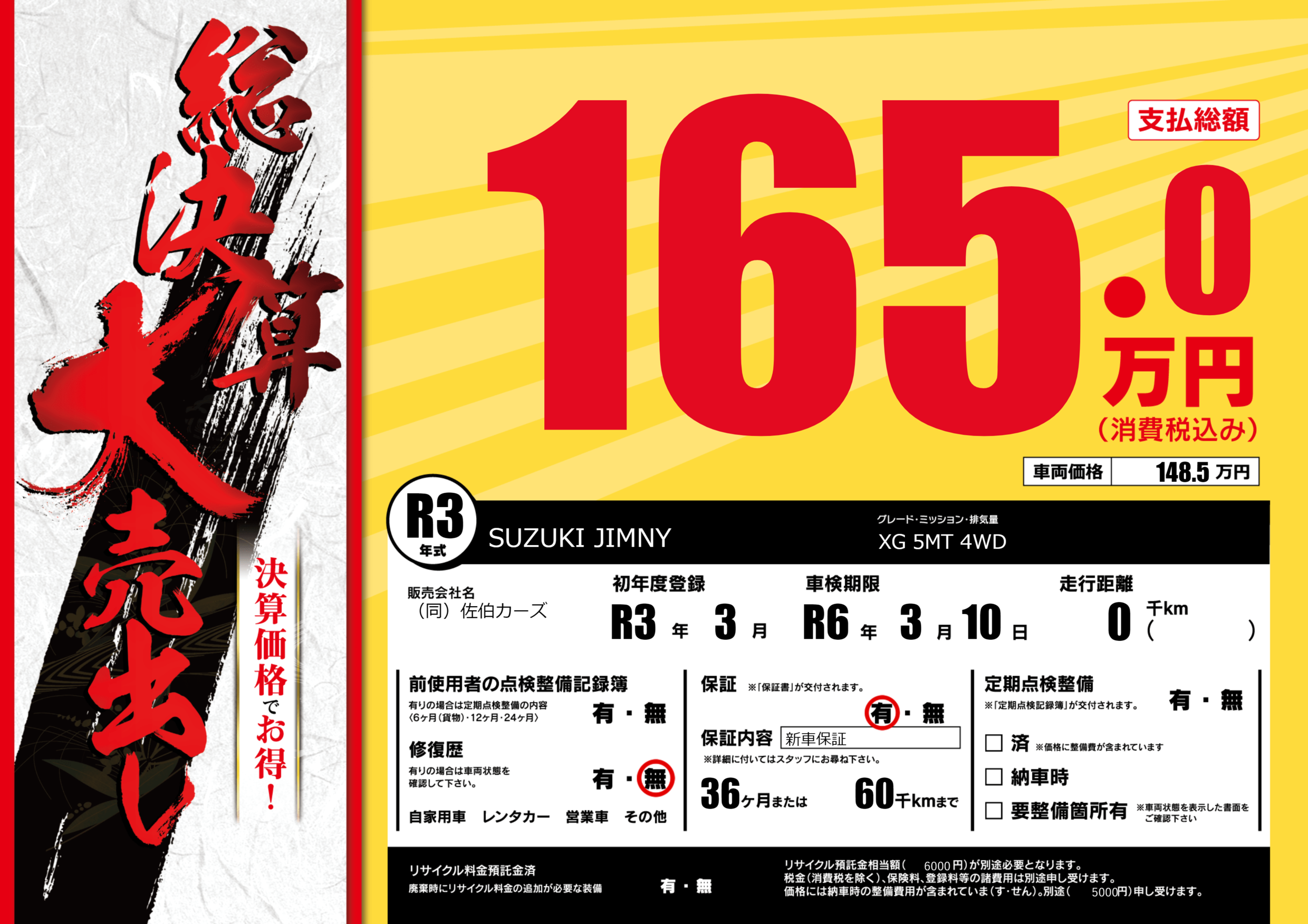 | 走行キロ | - | 初年度登録 | R3年3月 |