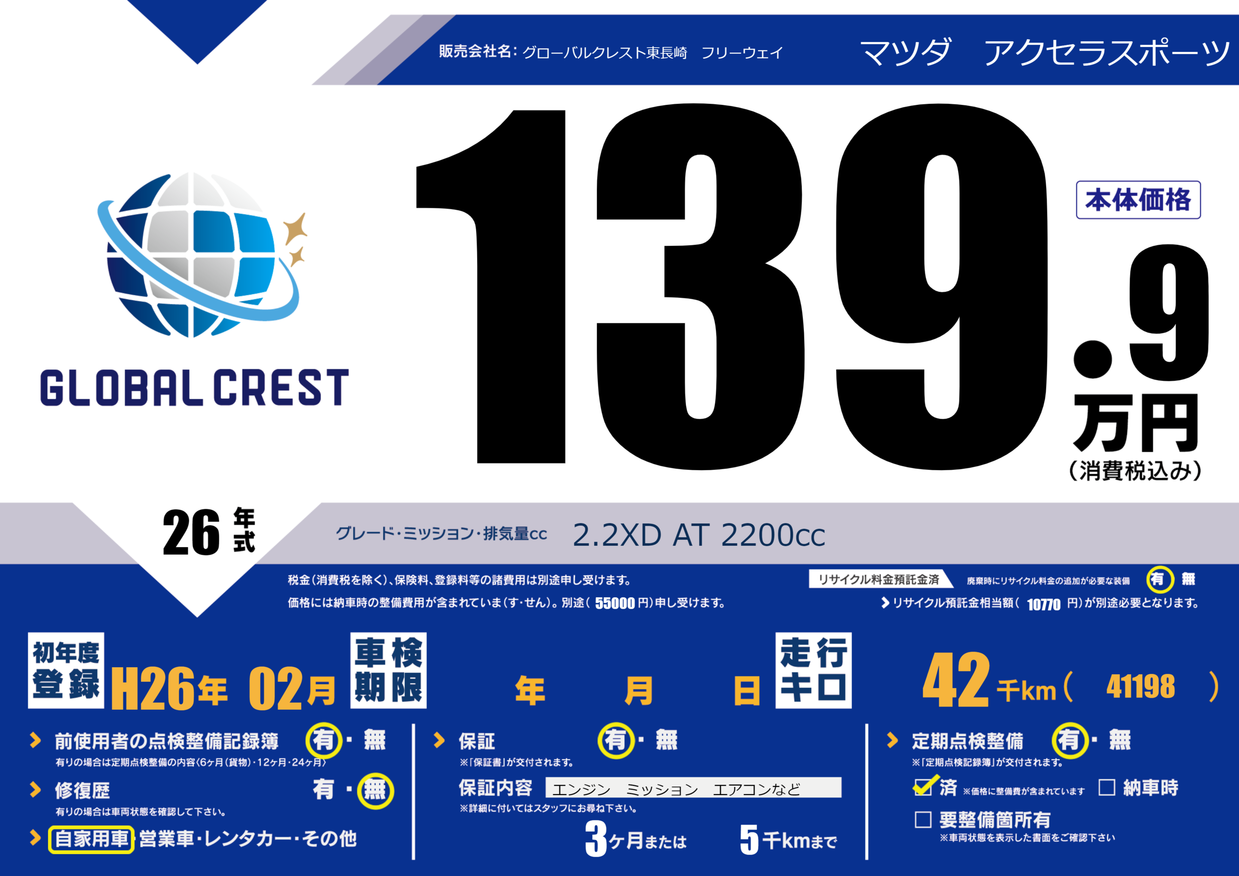 | 定期点検整備 | 定期点検整備あり 定期点検整備済み | ||