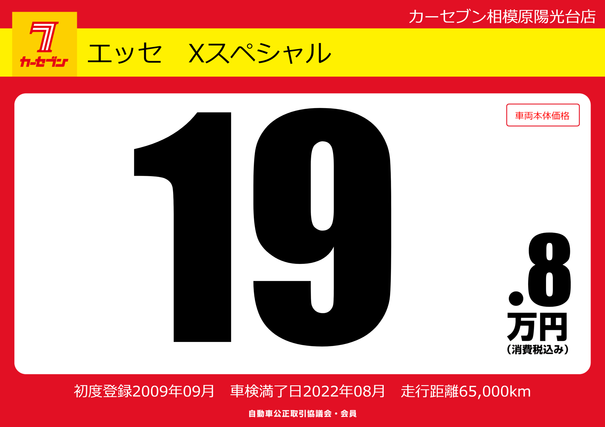 | 車名 | エッセ Xスペシャル | グレード ミッション 排気量 |