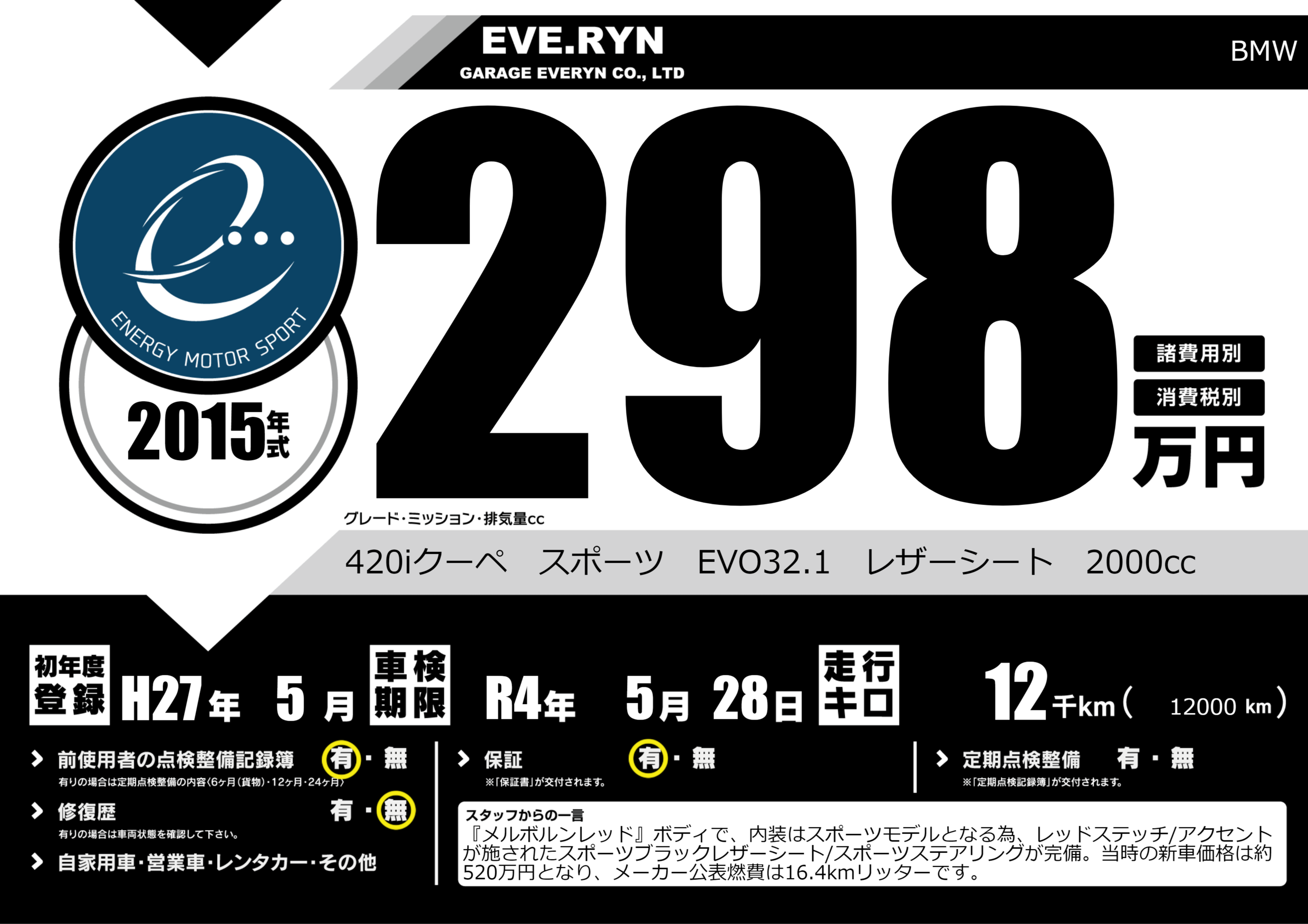 420iクーペ スポーツ EVO32.1 レザーシート 2000cc |