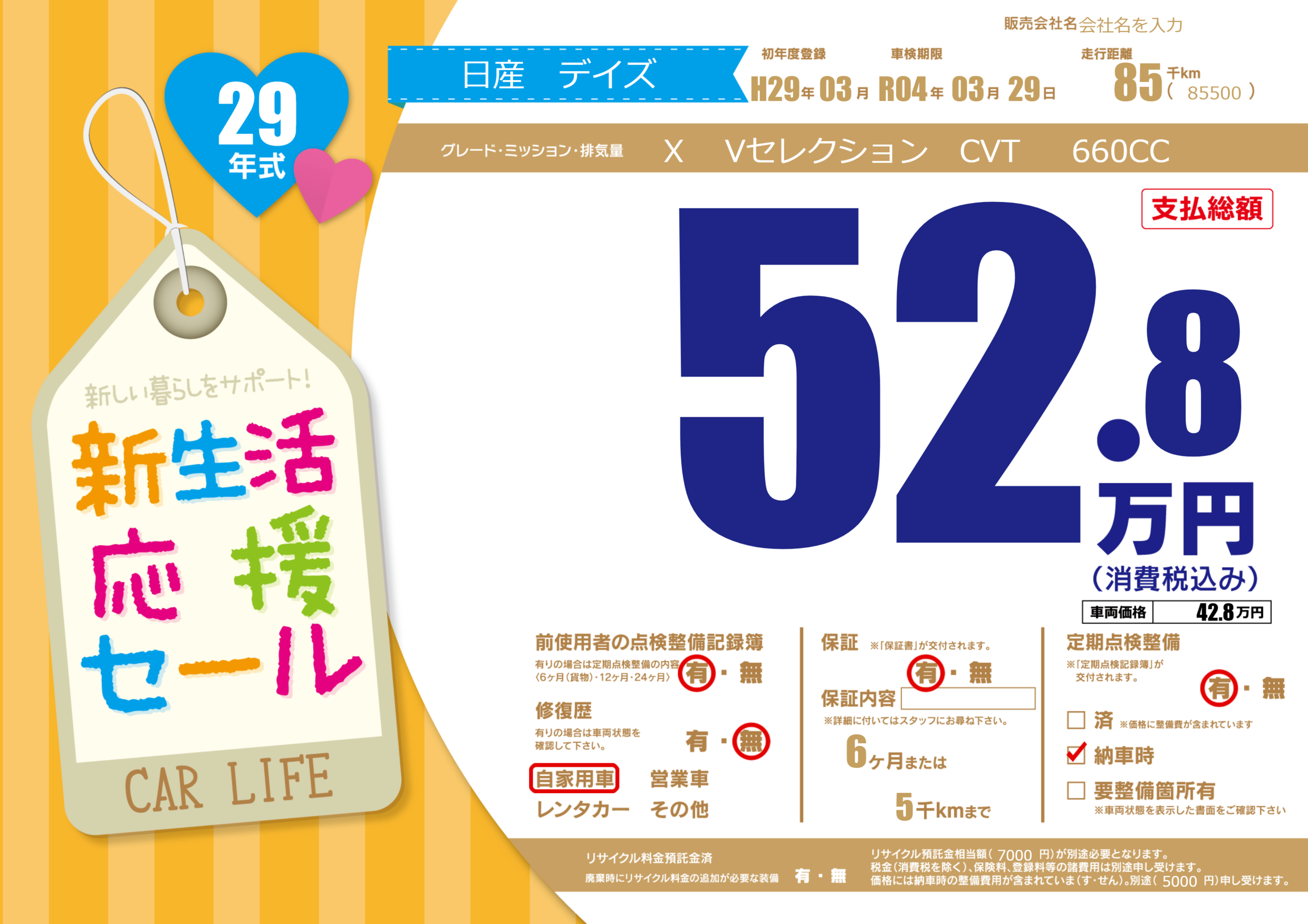 | 定期点検整備 | 定期点検整備あり 納車時あり | ||