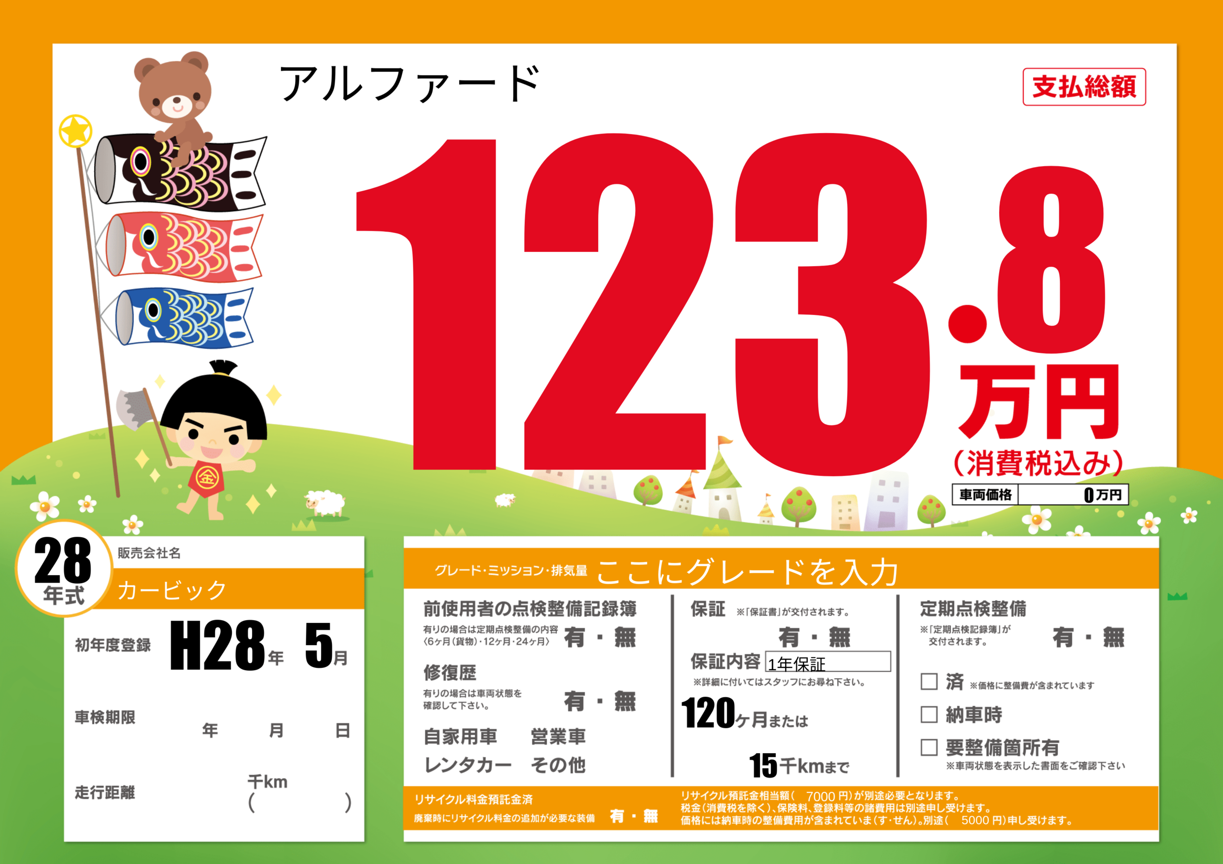 保証なし 保証内容(1年保証) 120ヶ月または(15)千kmまで |