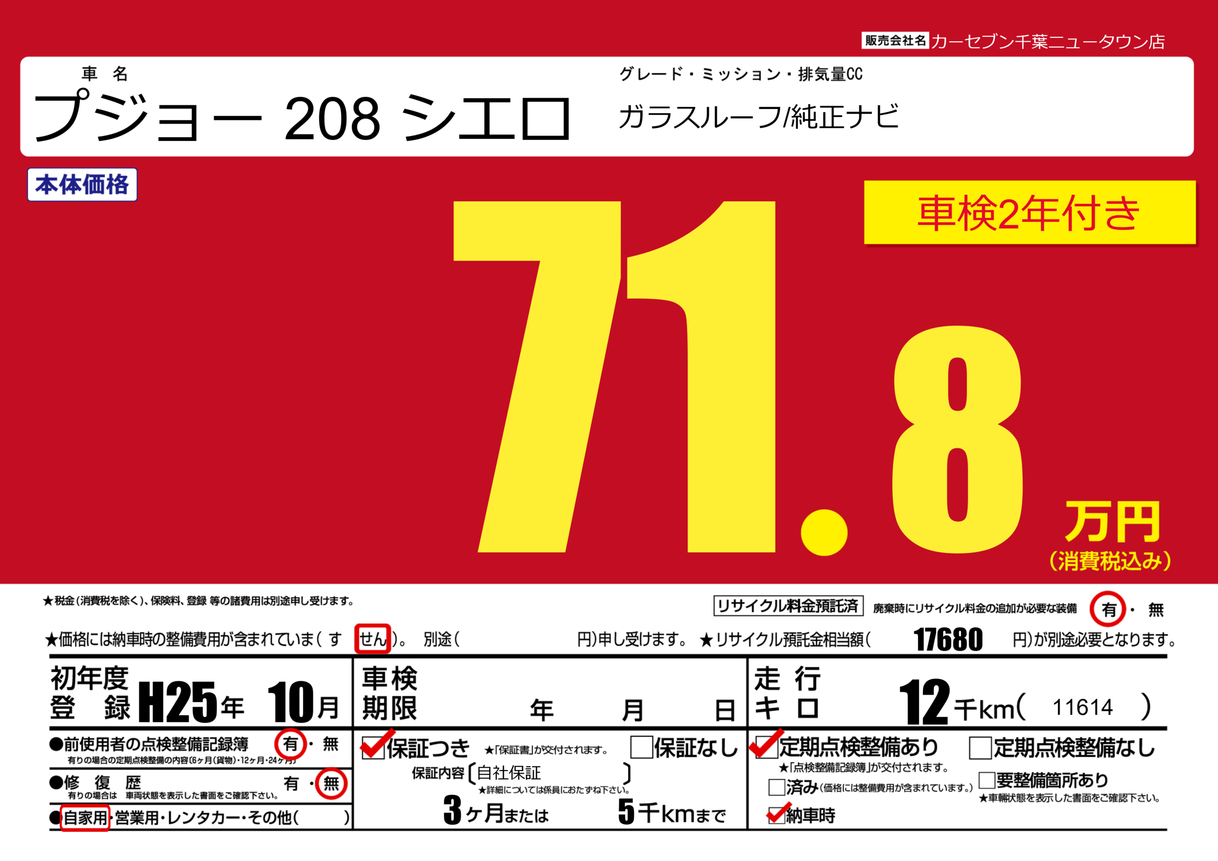 初年度登録 H25年10月