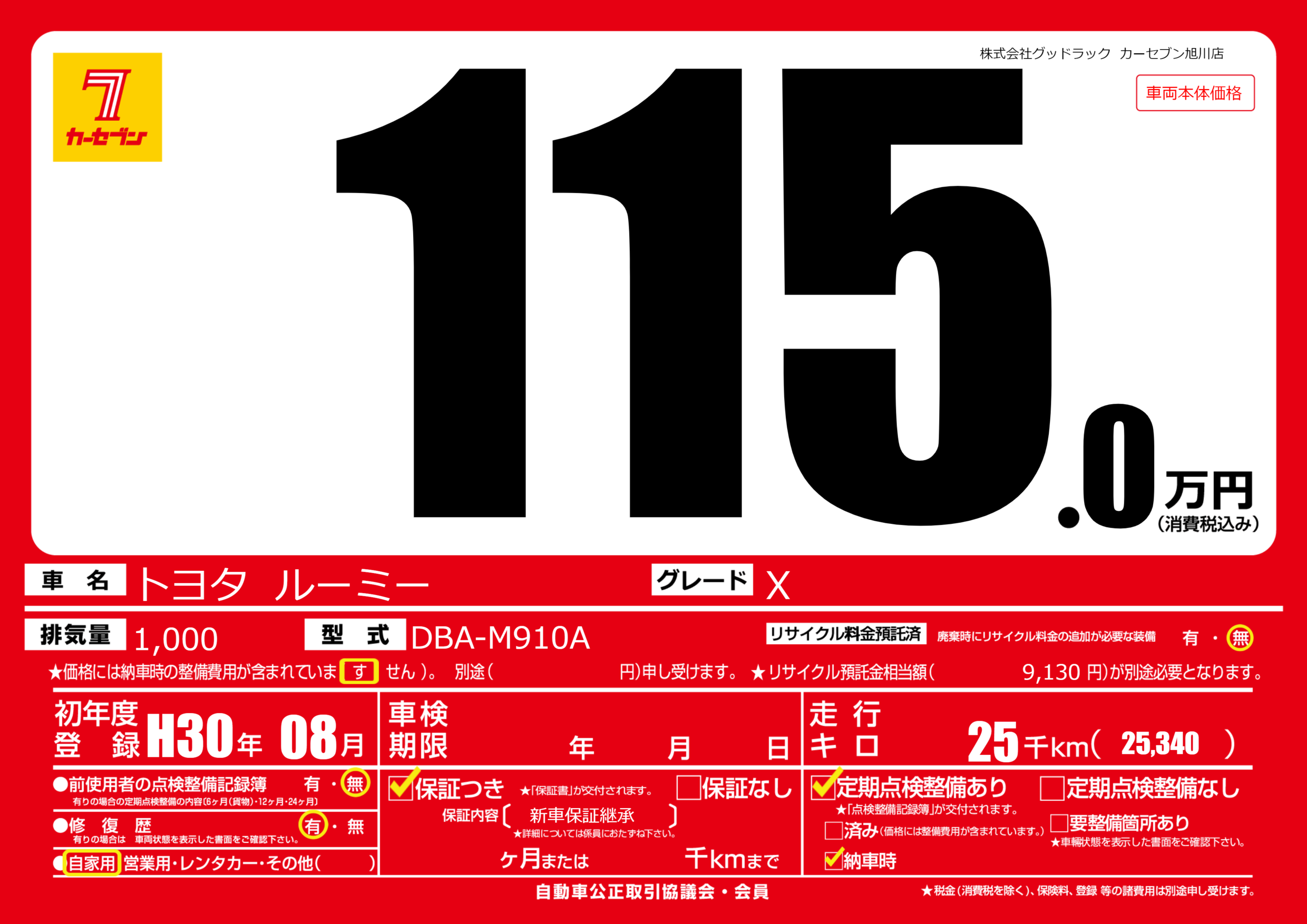 | 走行キロ | 2.5万km | ||