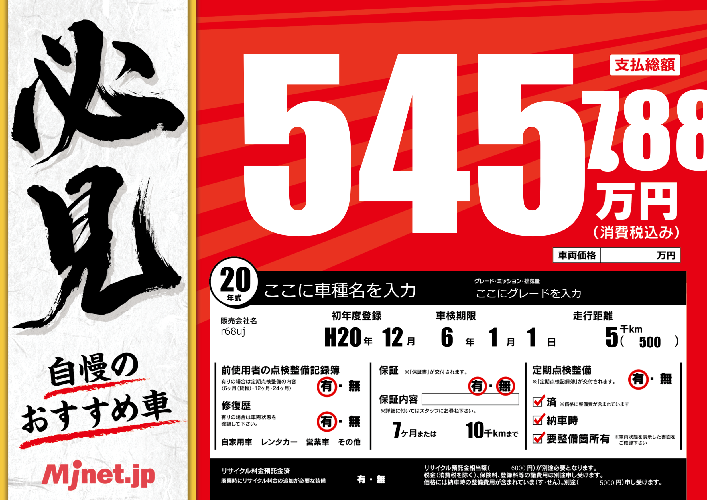 | 車名 | ここに車種名を入力 | グレード ミッション 排気量 |