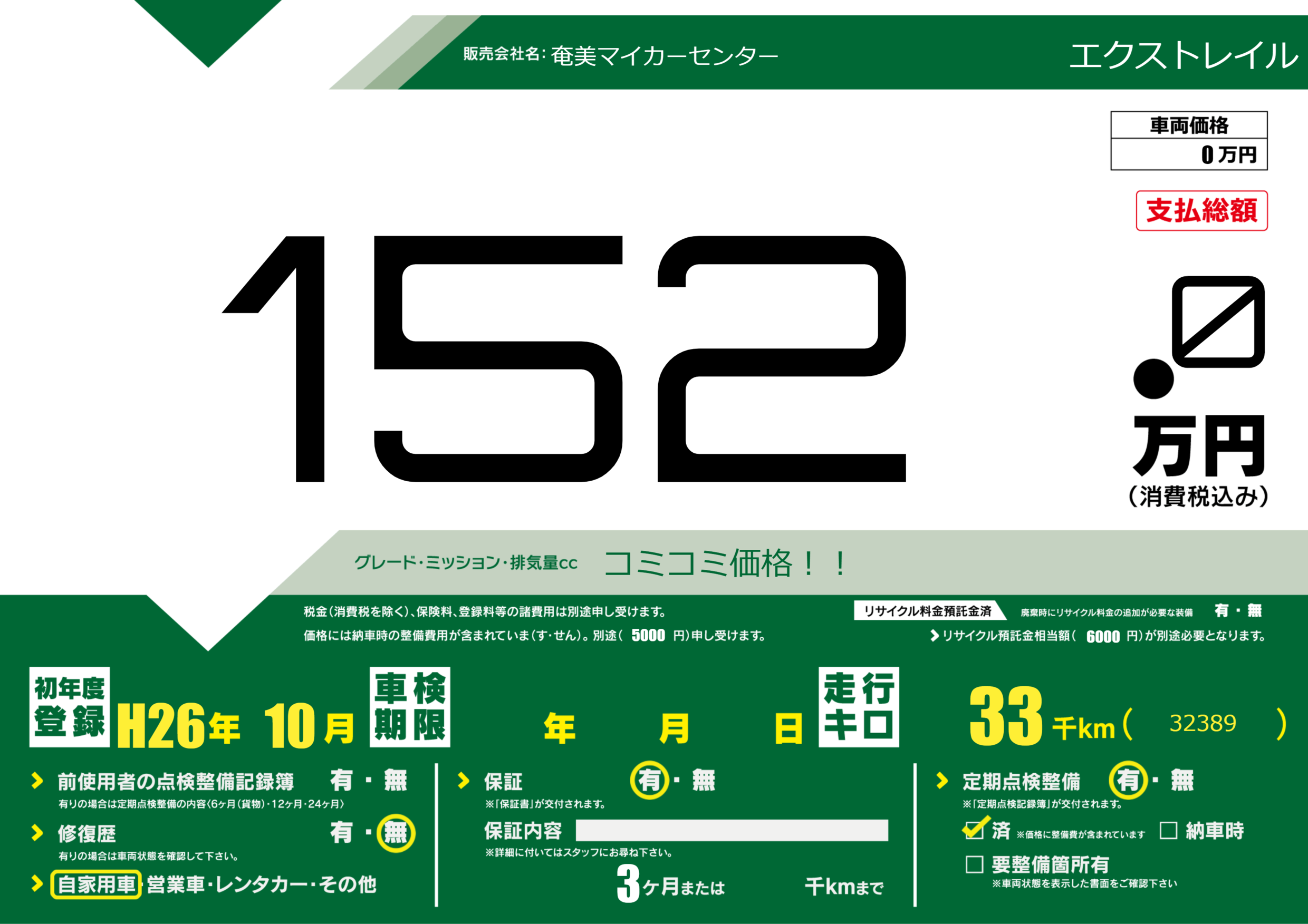 | 定期点検整備 | 定期点検整備あり 定期点検整備済み | ||