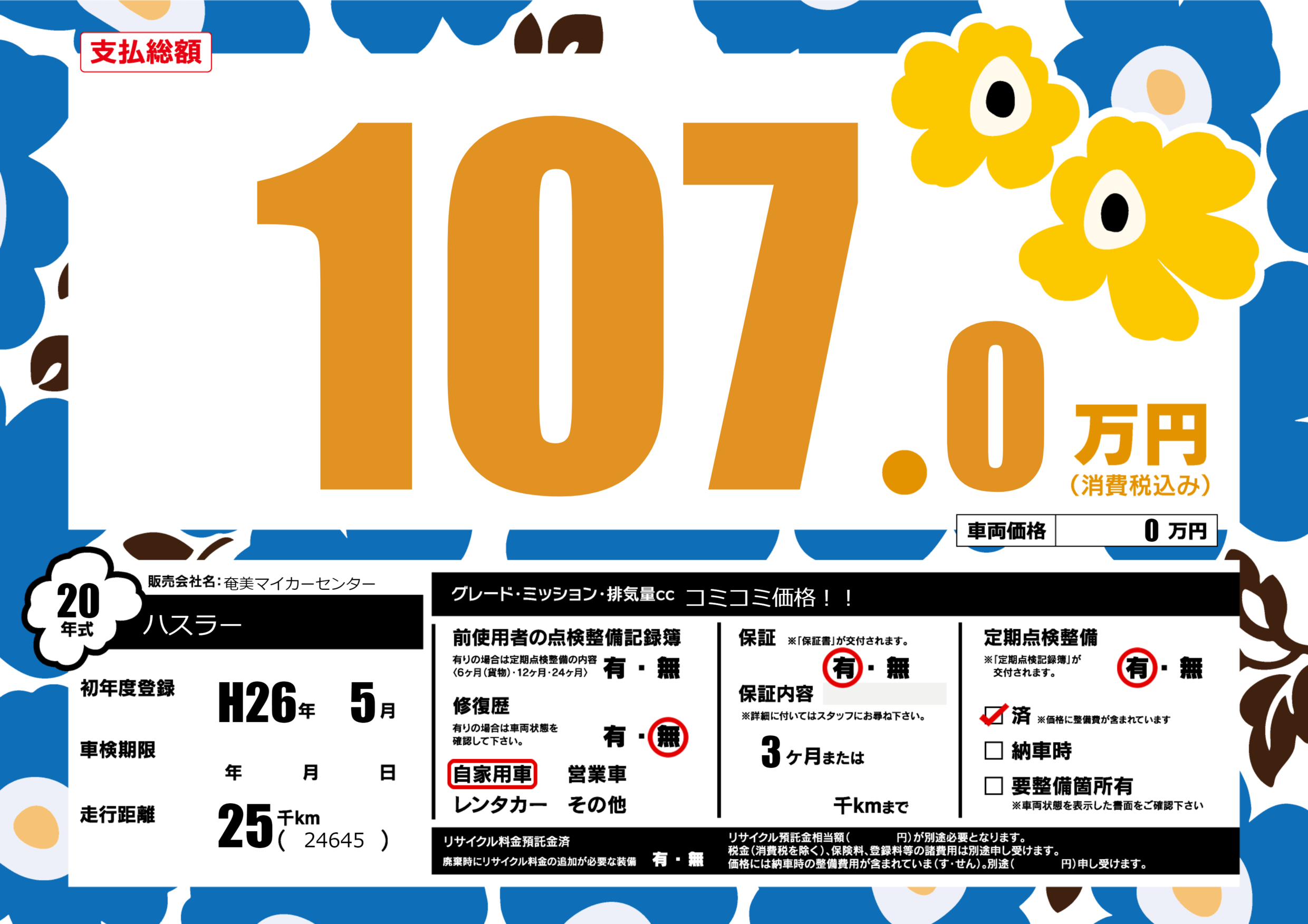 | 定期点検整備 | 定期点検整備あり 定期点検整備済み | ||