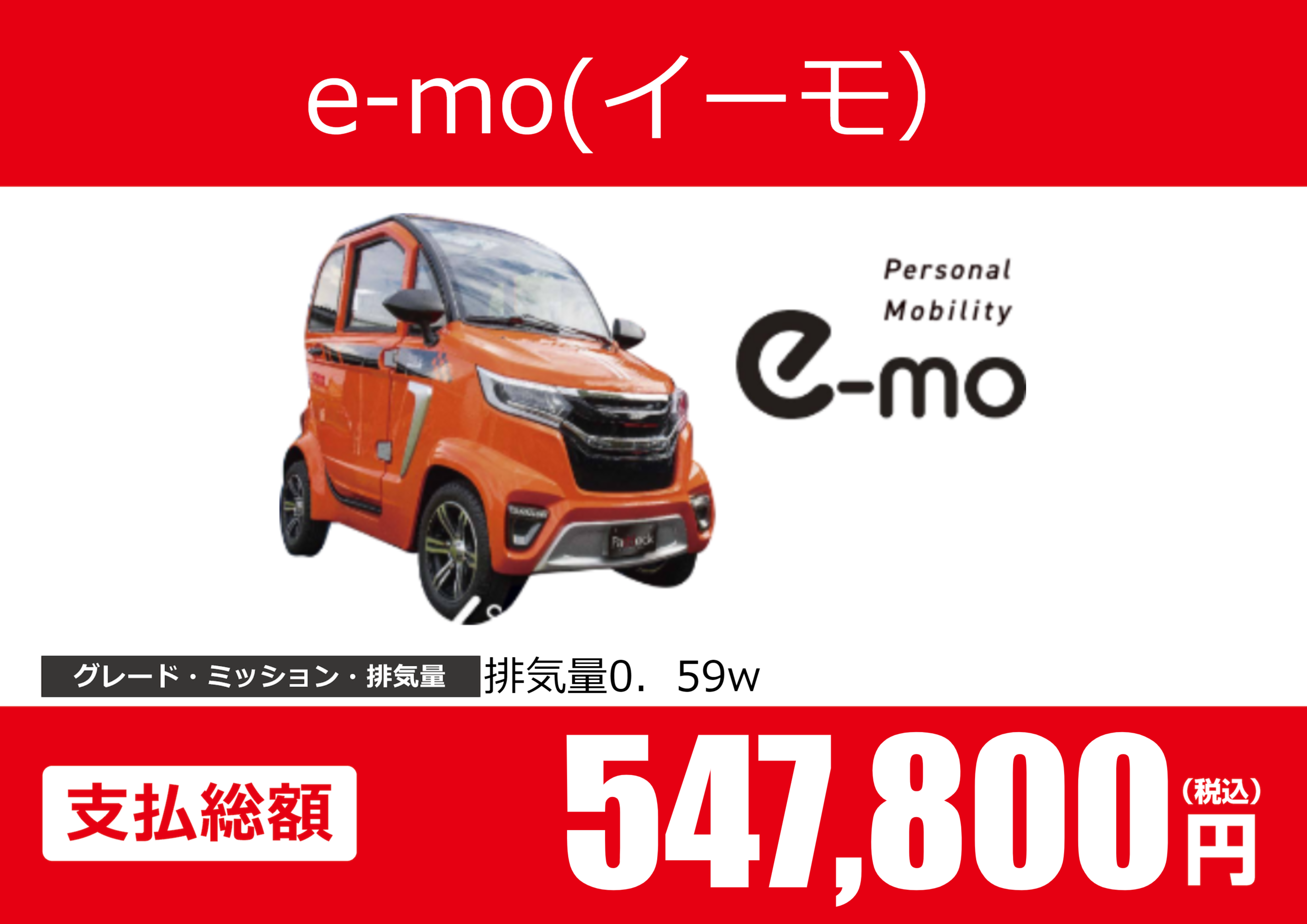 | 車名 | e-mo(イーモ) | グレード ミッション 排気量 |