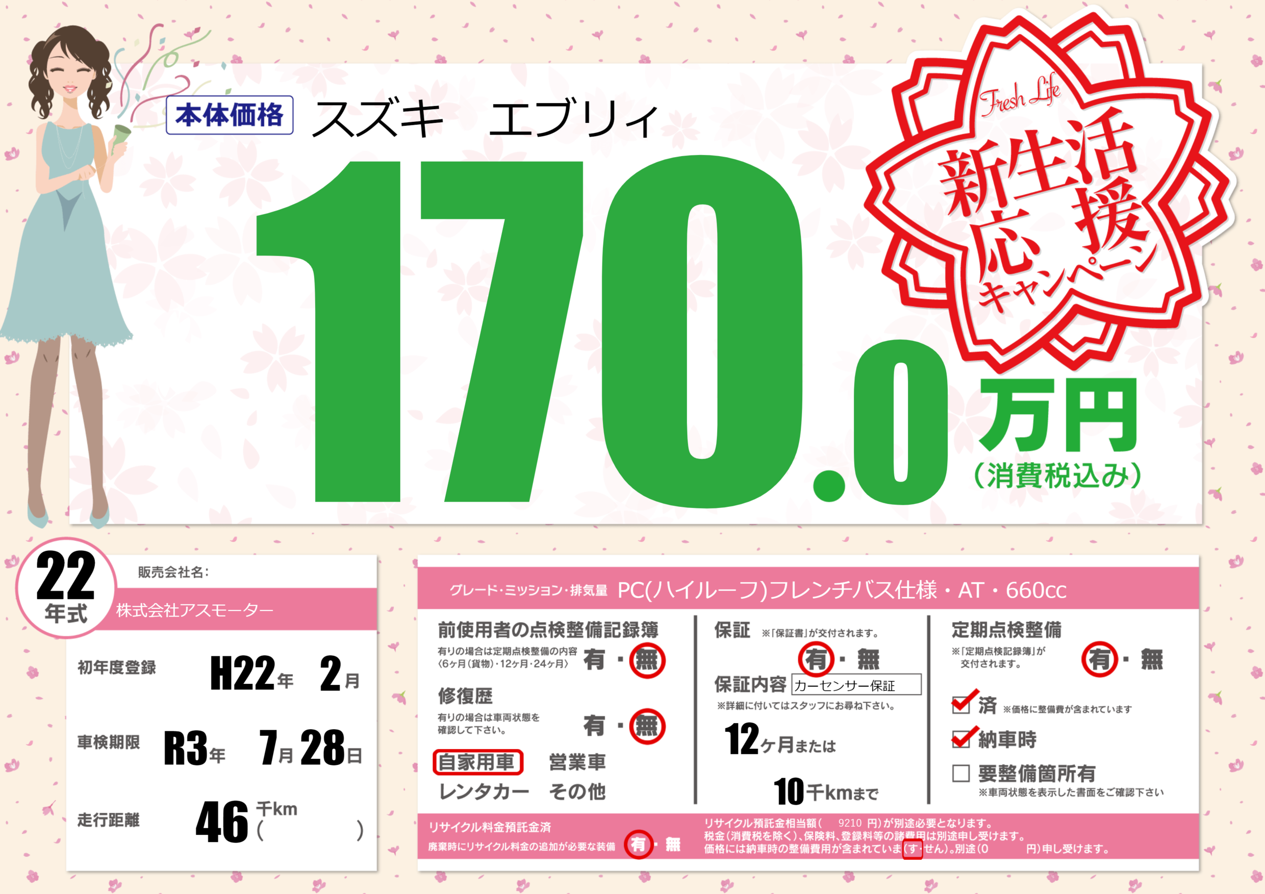 | 定期点検整備 | 定期点検整備あり 定期点検整備済み 納車時あり | ||
