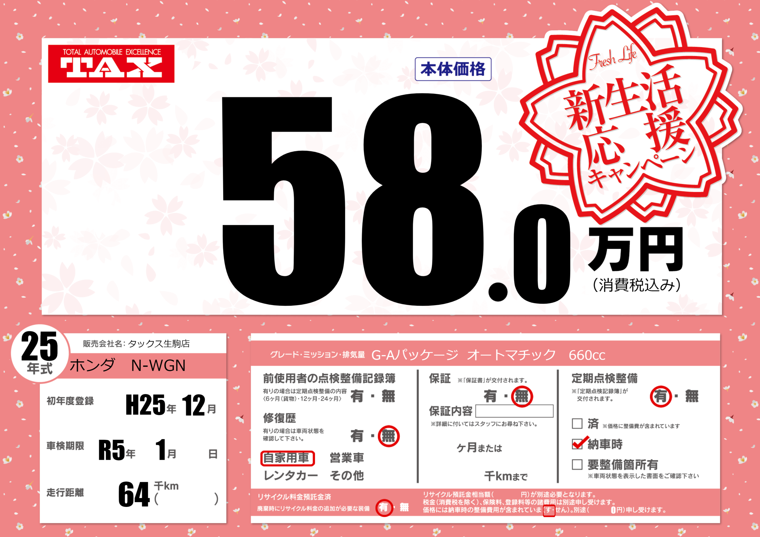 | 車名 | ホンダ N-WGN | グレード ミッション 排気量 |
