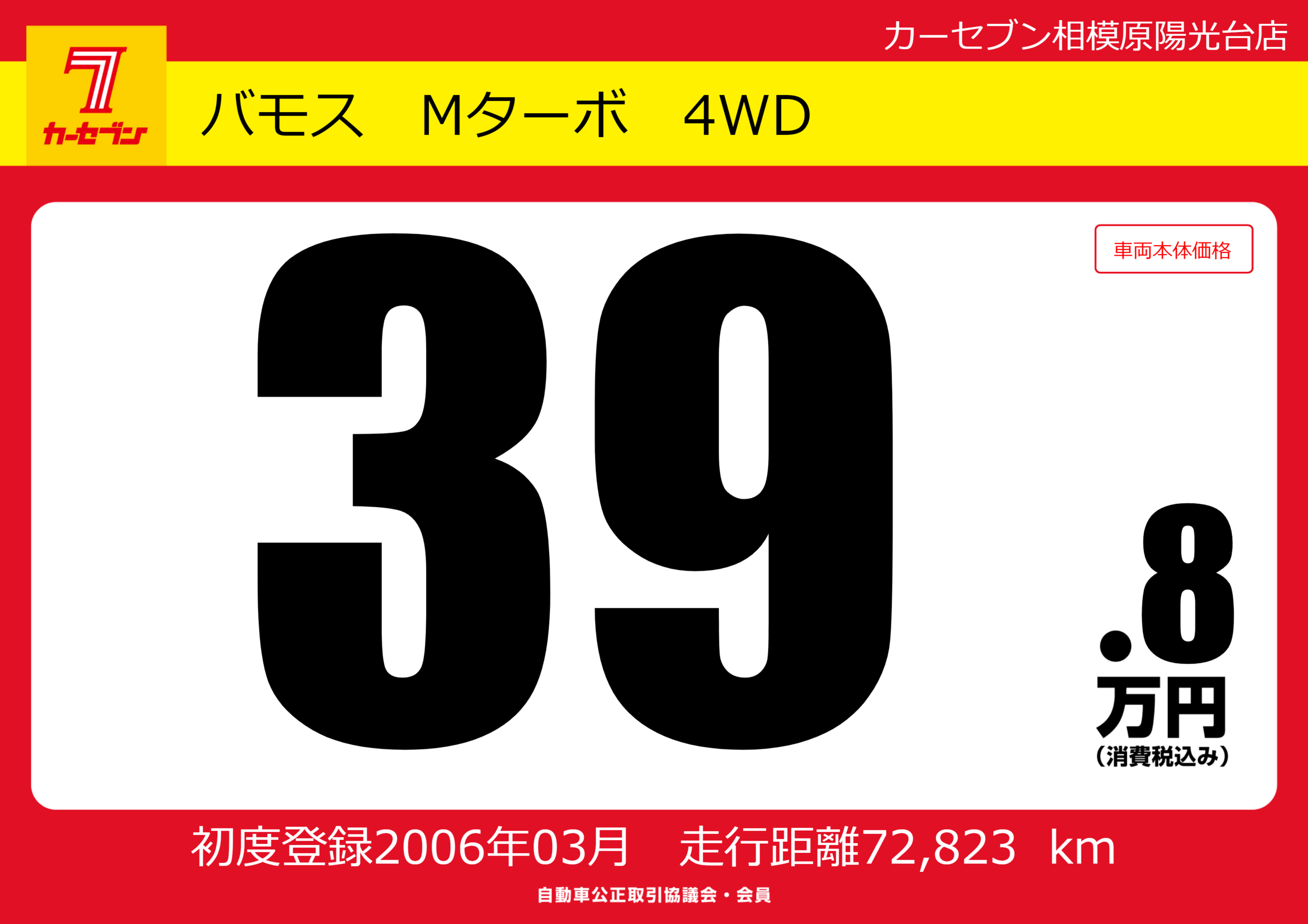 | 車名 | バモス Mターボ 4WD | グレード ミッション 排気量 |