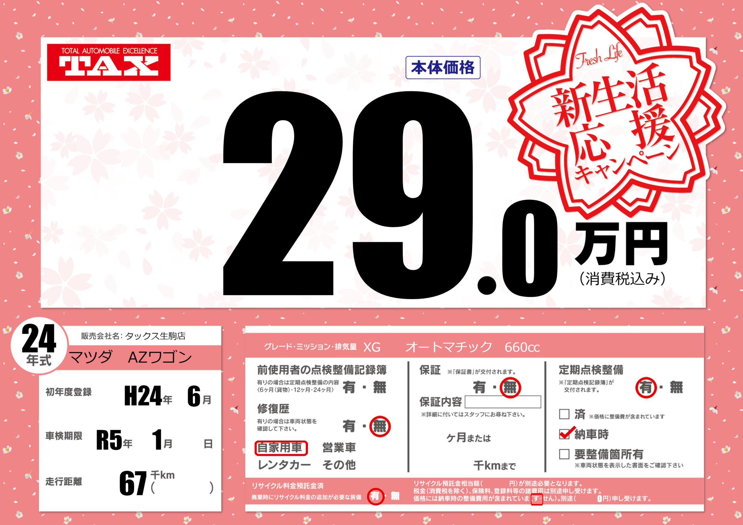 | 車検制限 | R5年 1月 - 日 | ||