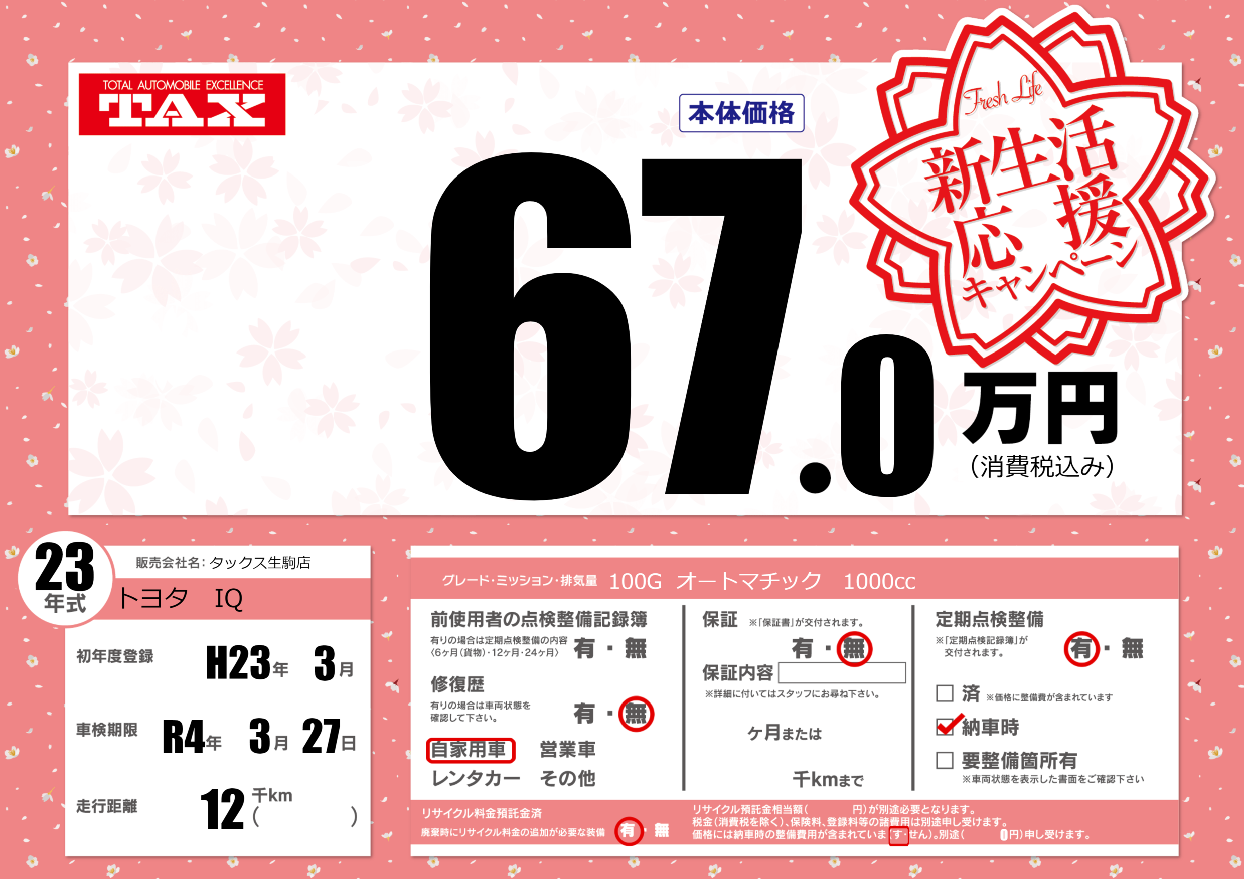| 車名 | トヨタ IQ | グレード ミッション 排気量 |