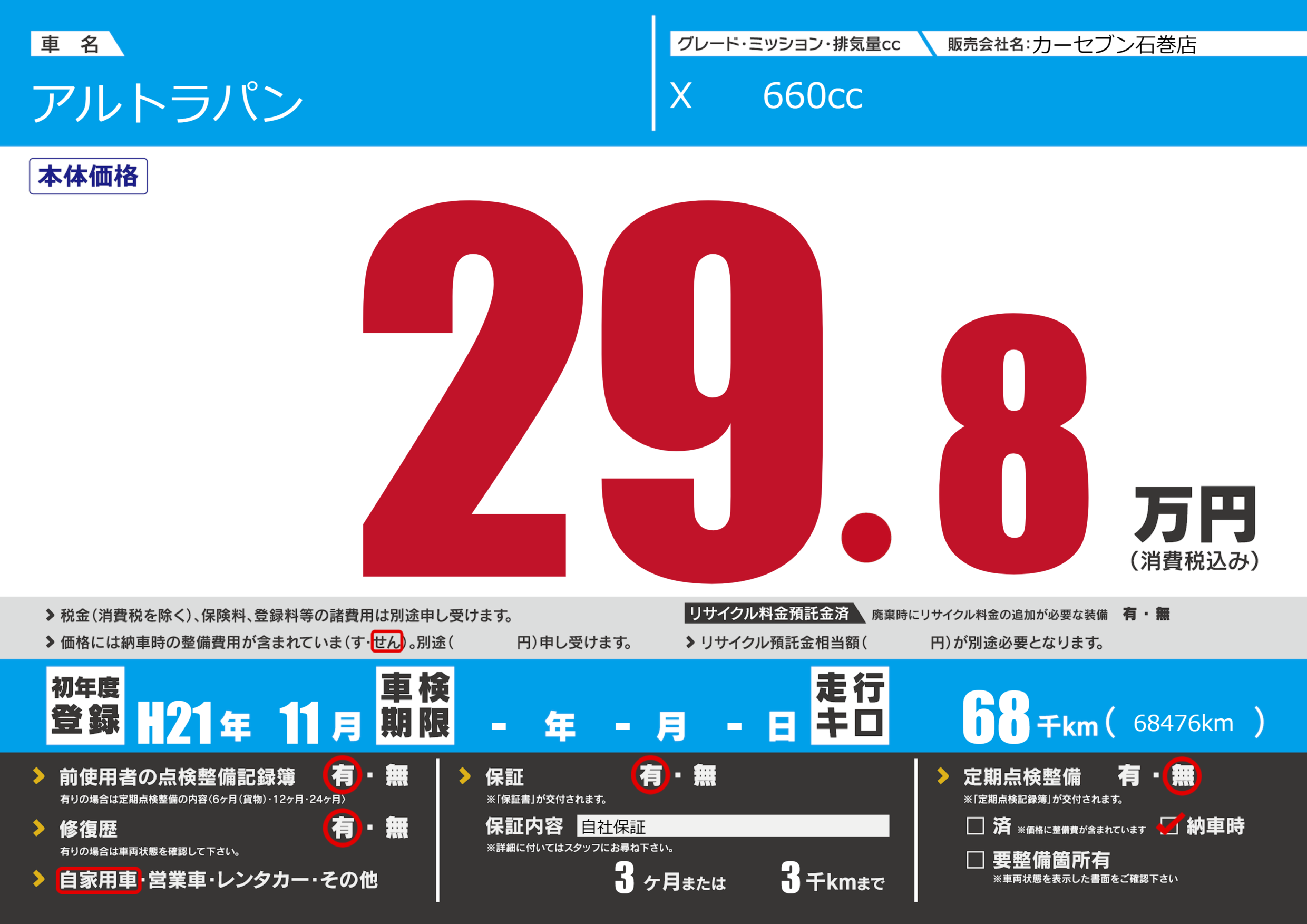 | 定期点検整備 | 定期点検整備なし 納車時あり | ||