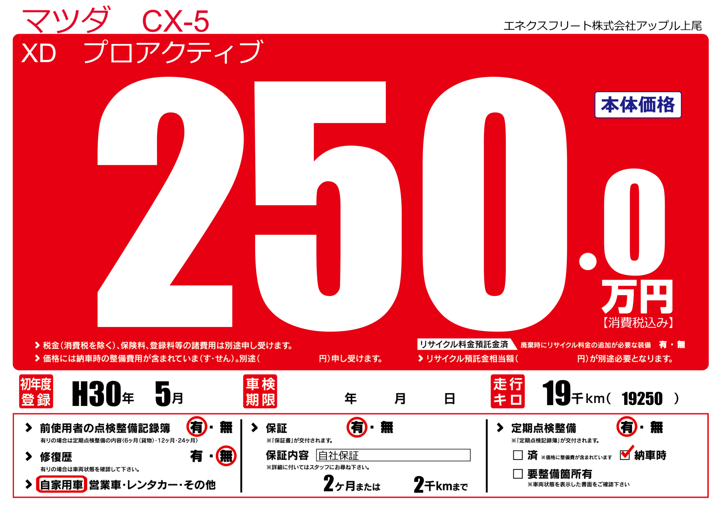 | 車名 | マツダ CX-5 | グレード ミッション 排気量 |
