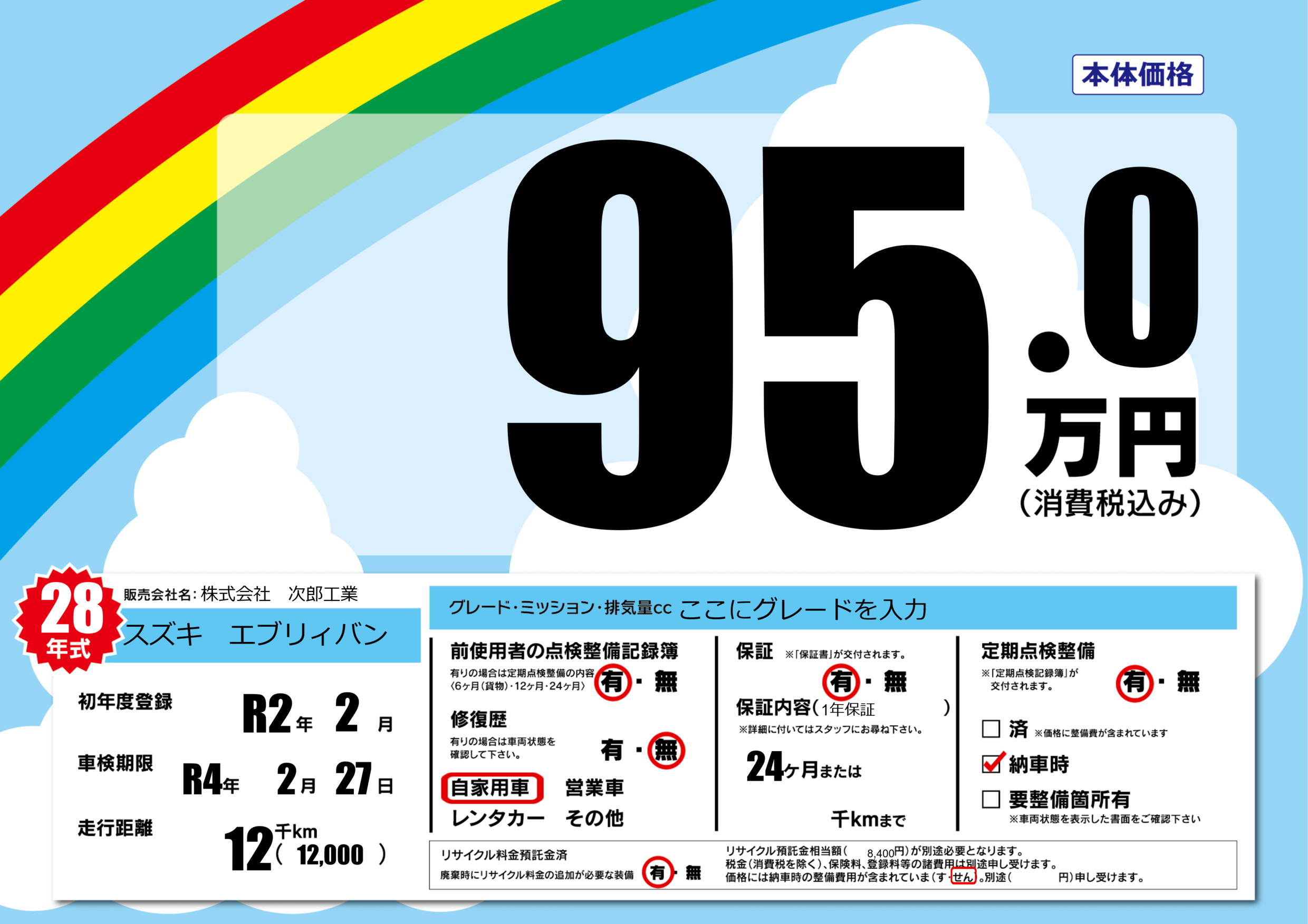 | 定期点検整備 | 定期点検整備あり 納車時あり | ||