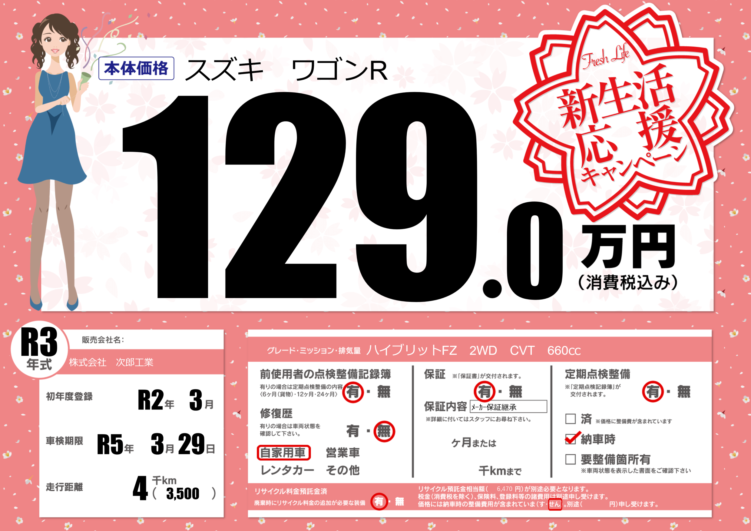 | 車検制限 | R5年 3月 29日 | ||