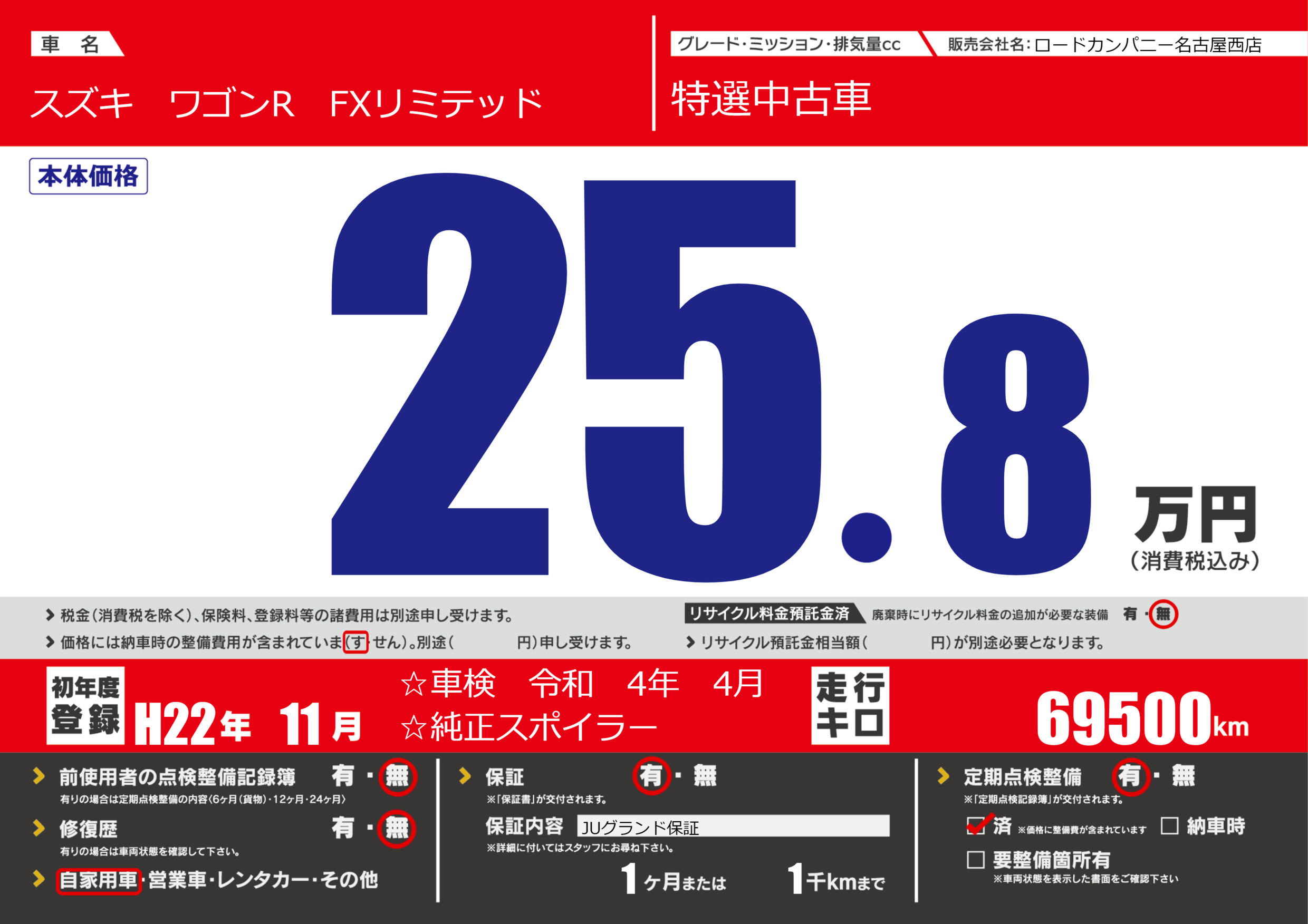 定期点検整備 定期点検整備あり 定期点検整備済み