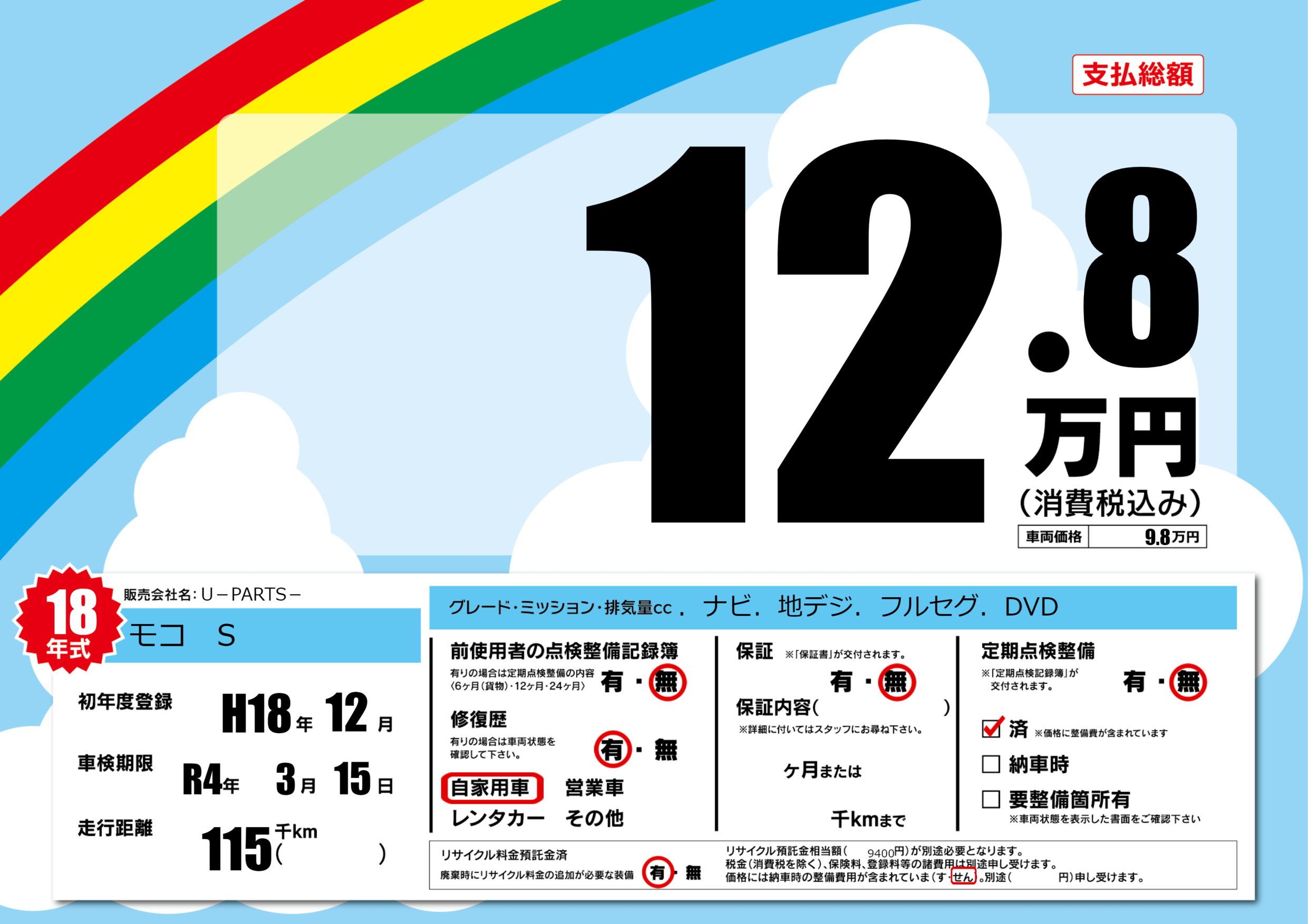 なし | 車検制限 | R4年3月15月 |