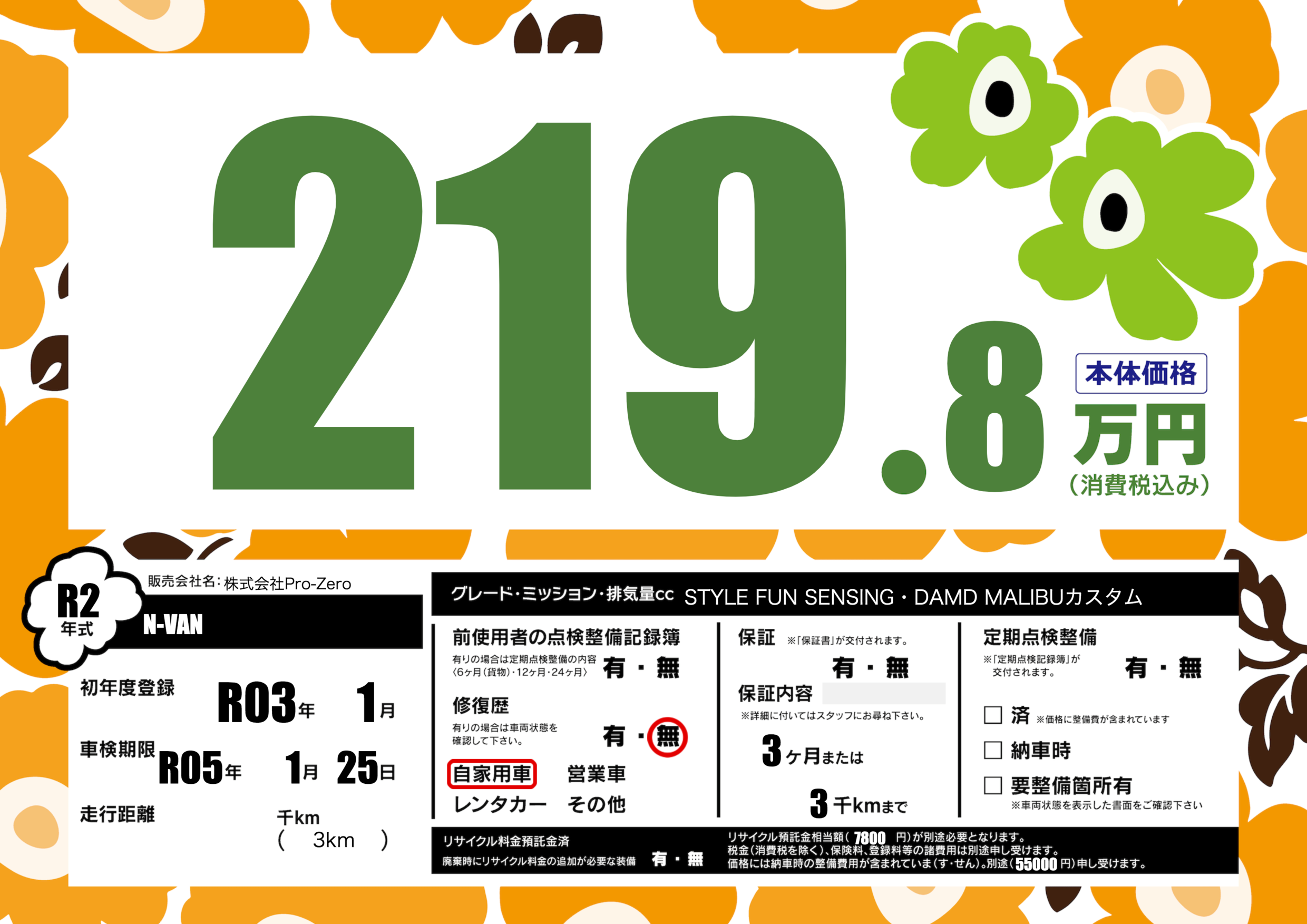 | 車名 | N-VAN | グレード ミッション 排気量 |