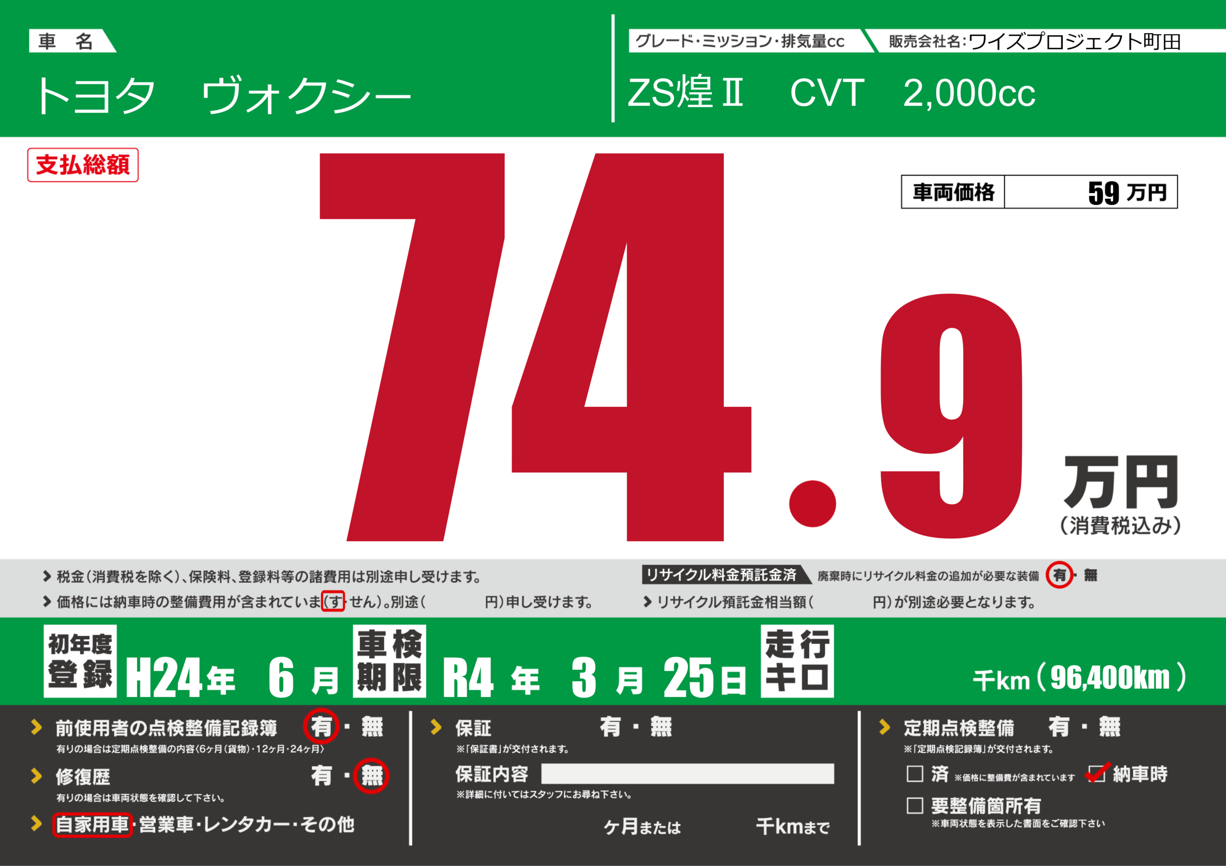 あり | 車検制限 | R4年3月25月 |