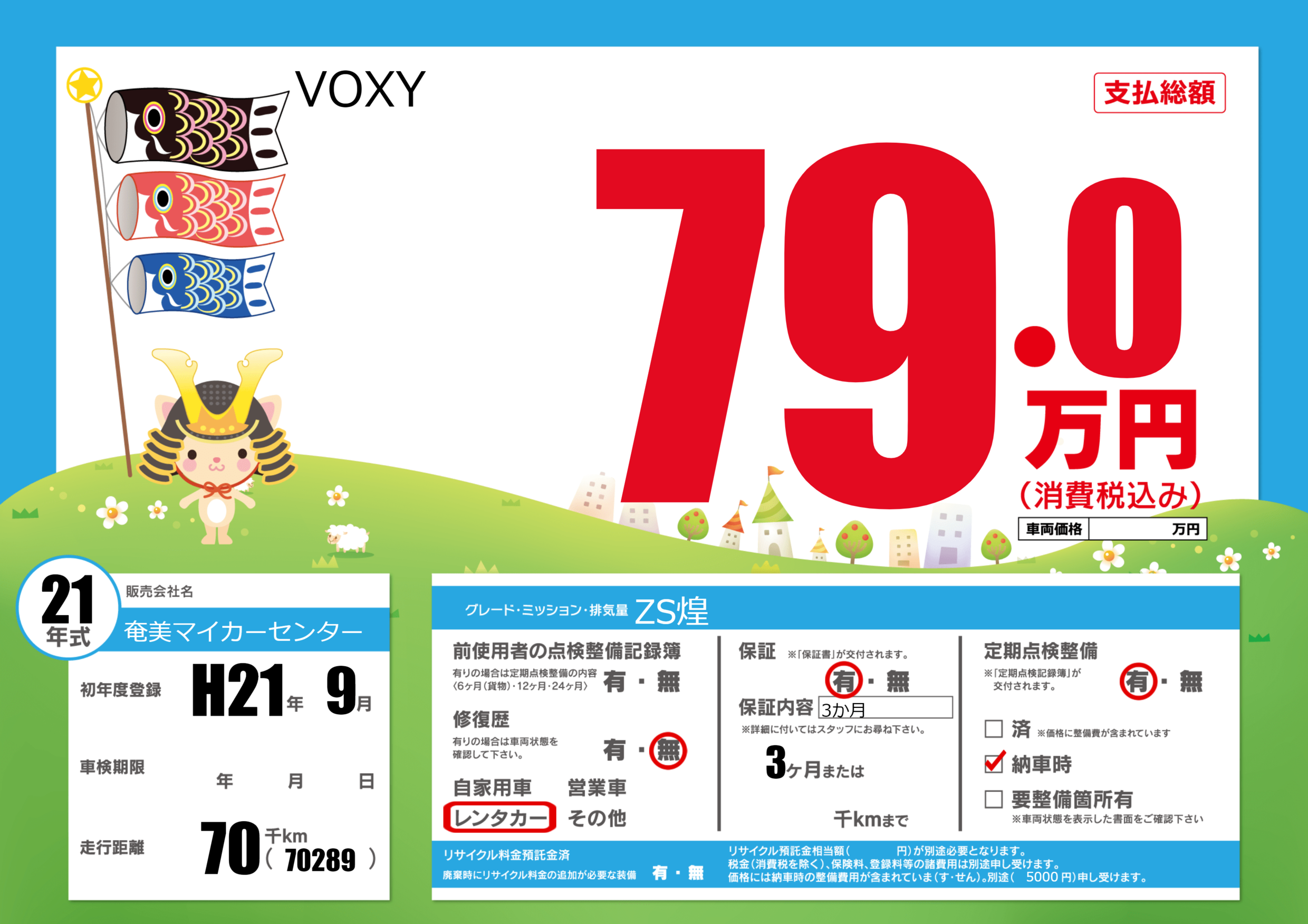 | 走行キロ | 7万km | 初年度登録 | H21年9月 |