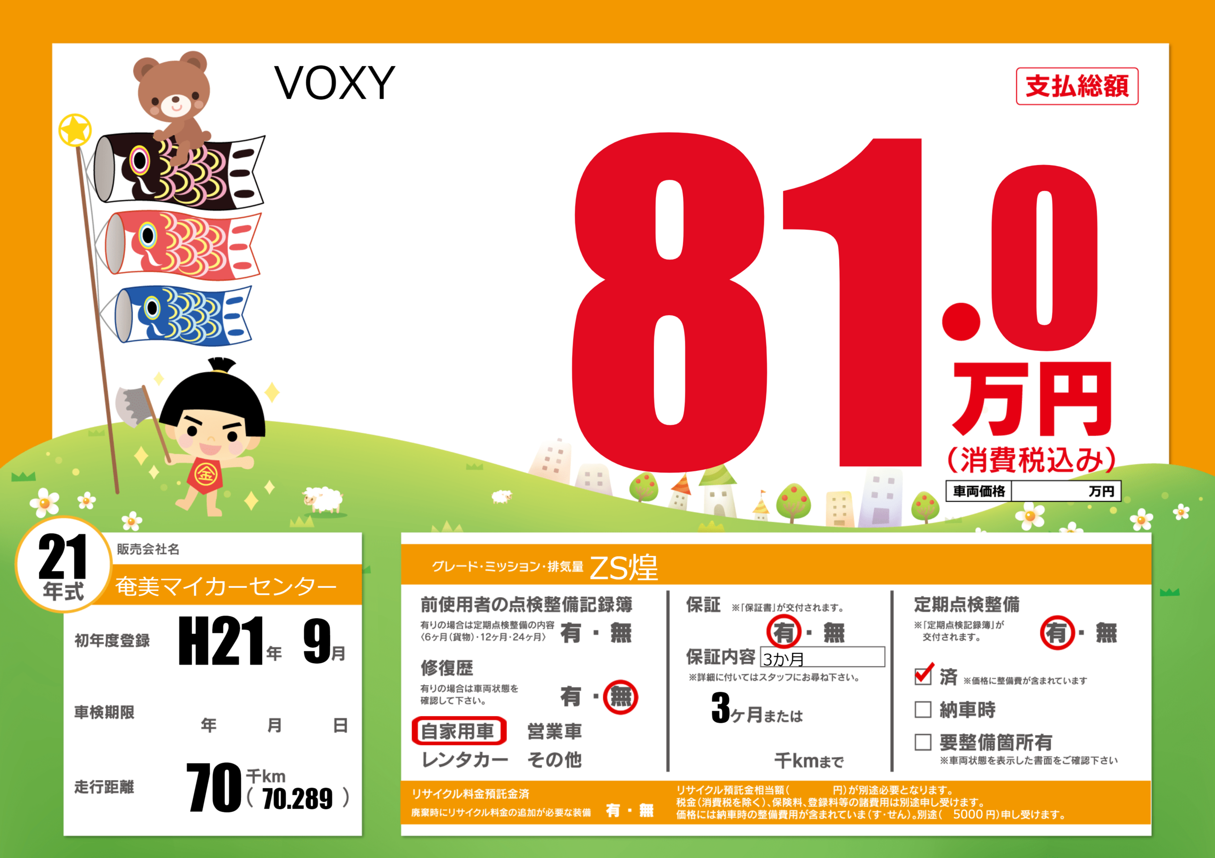 | 走行キロ | 7万km | 初年度登録 | H21年9月 |