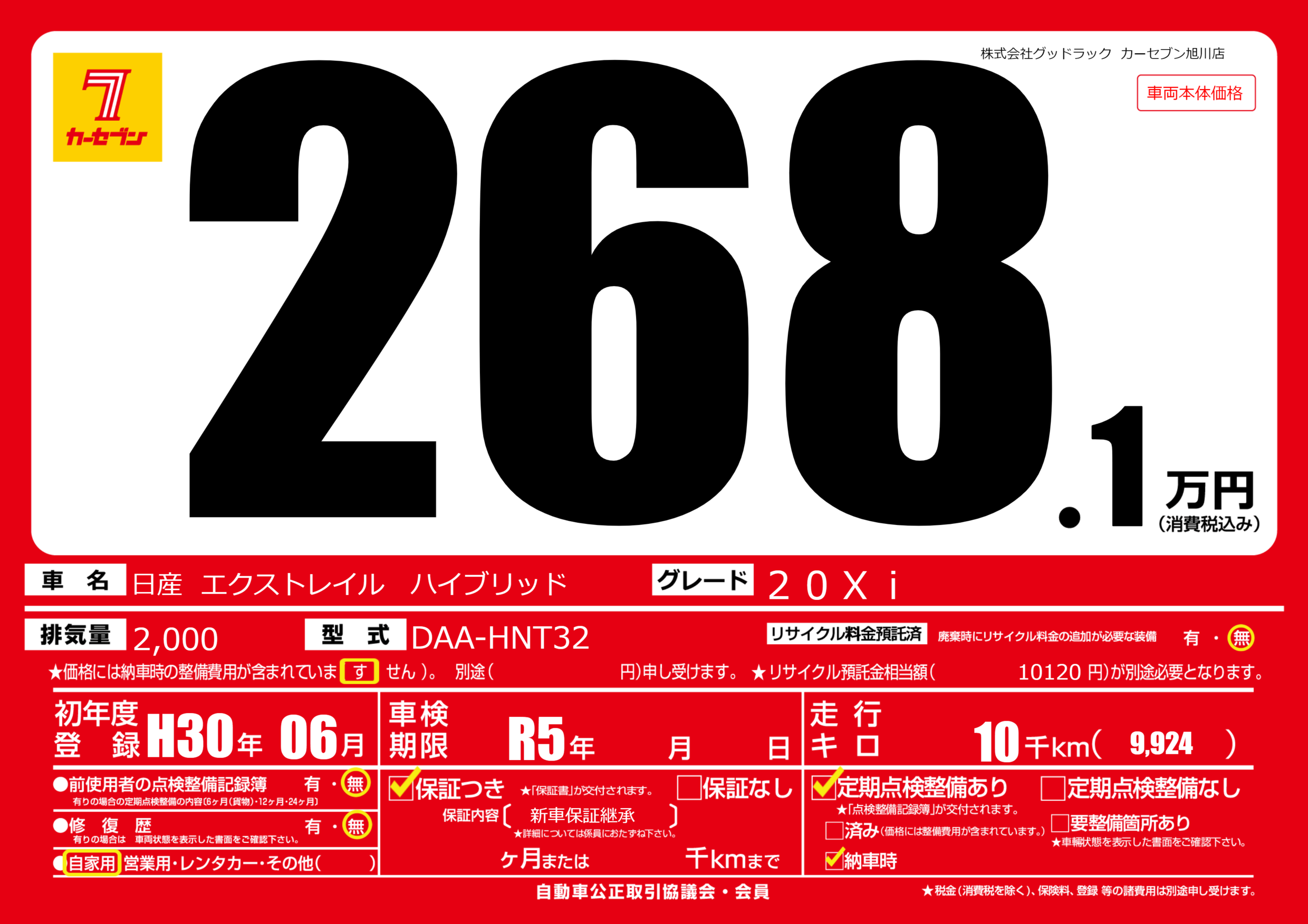 保証付き 保証内容( 新車保証継承) ヶ月または千km |