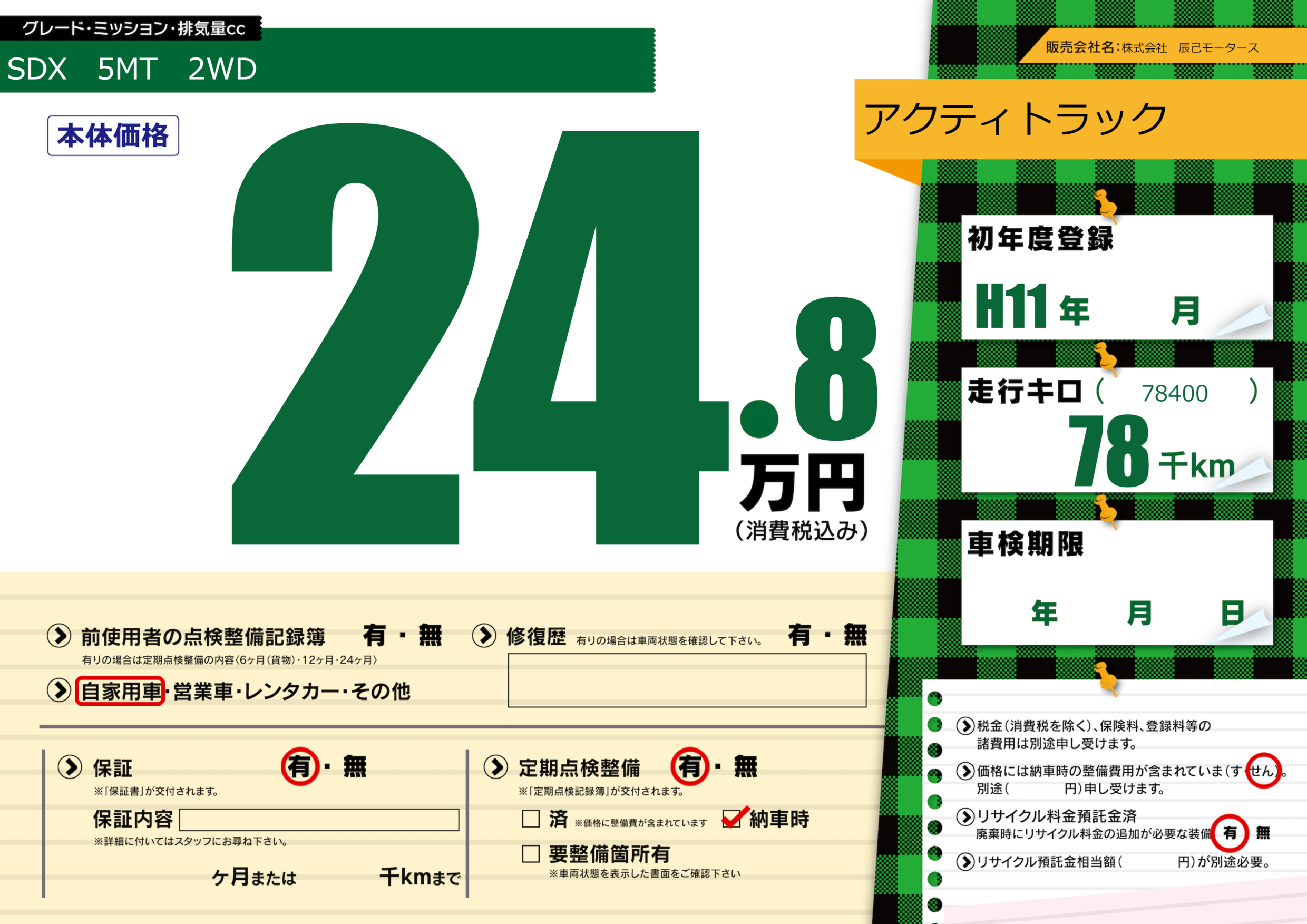 | 定期点検整備 | 定期点検整備あり 納車時あり | ||