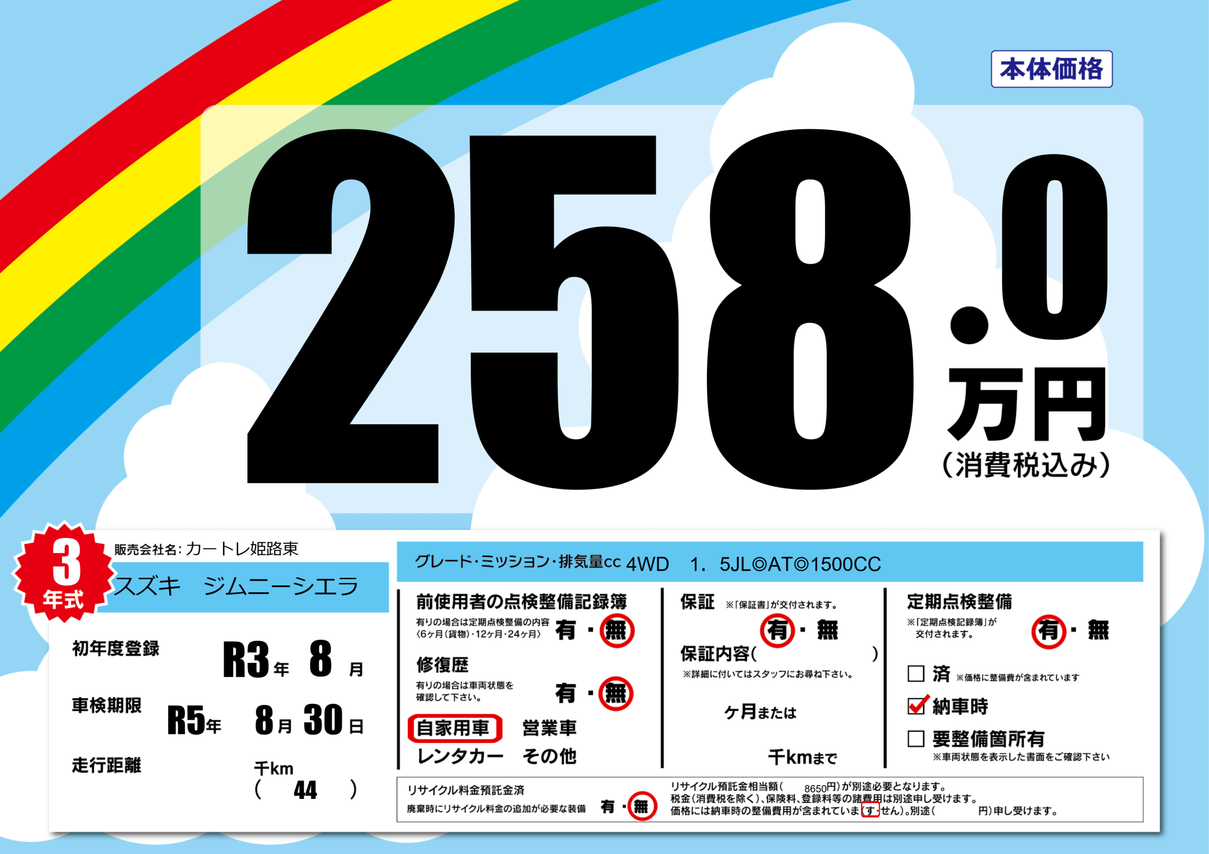 | 車名 | スズキ ジムニーシエラ | グレード ミッション 排気量 |