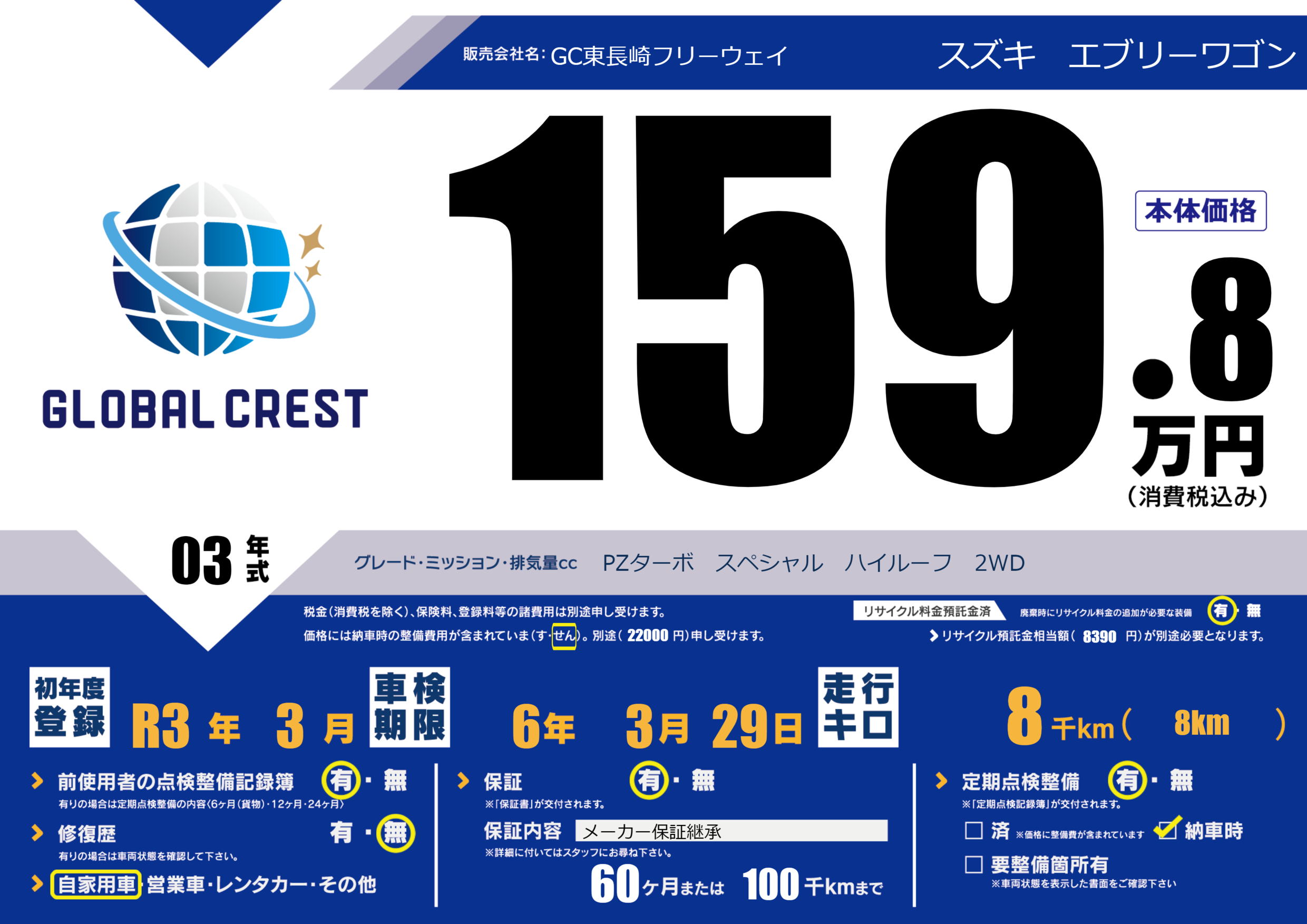 | 車名 | スズキ エブリーワゴン | グレード ミッション 排気量 |