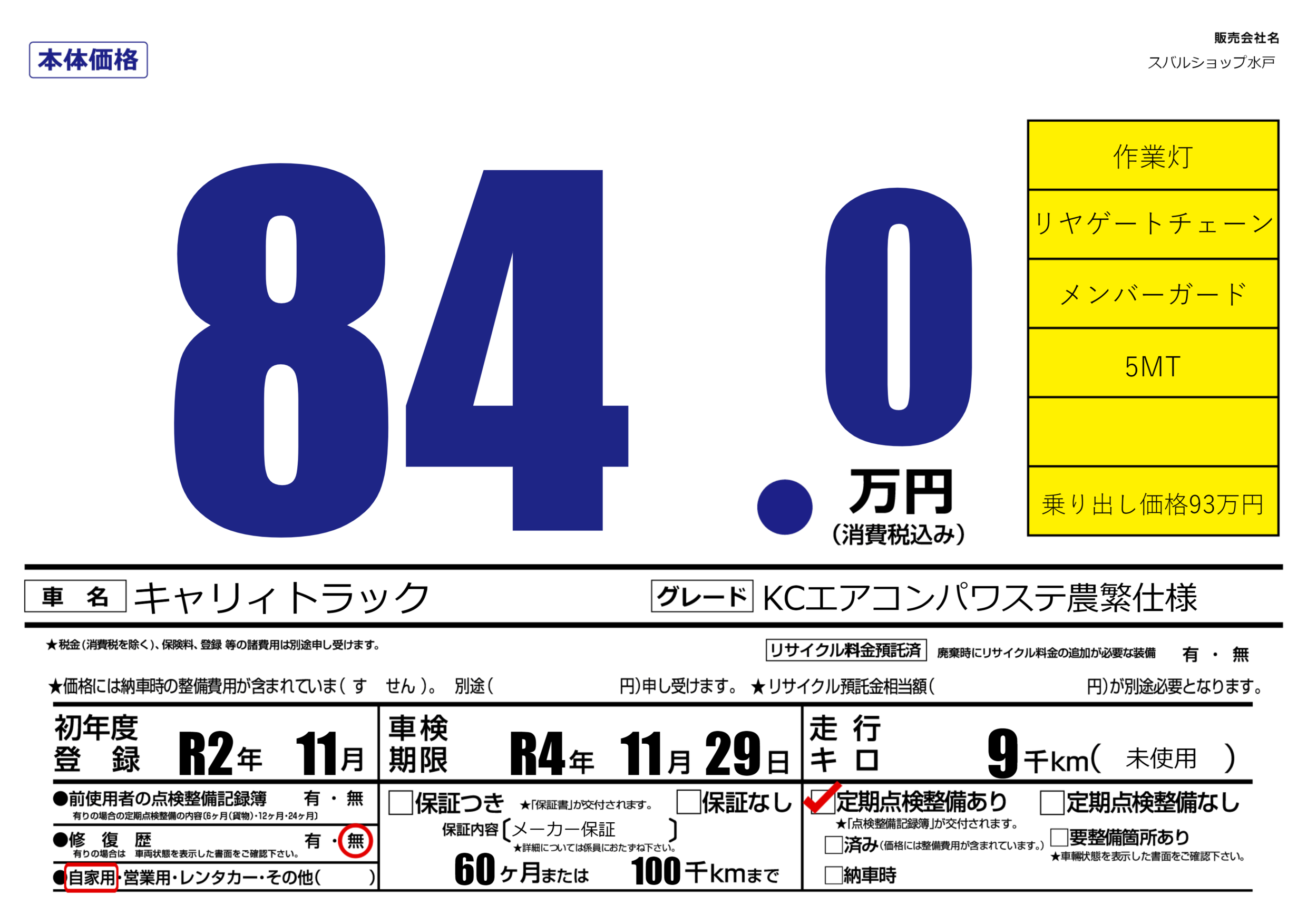 なし | 車検制限 | R4年11月29月 |