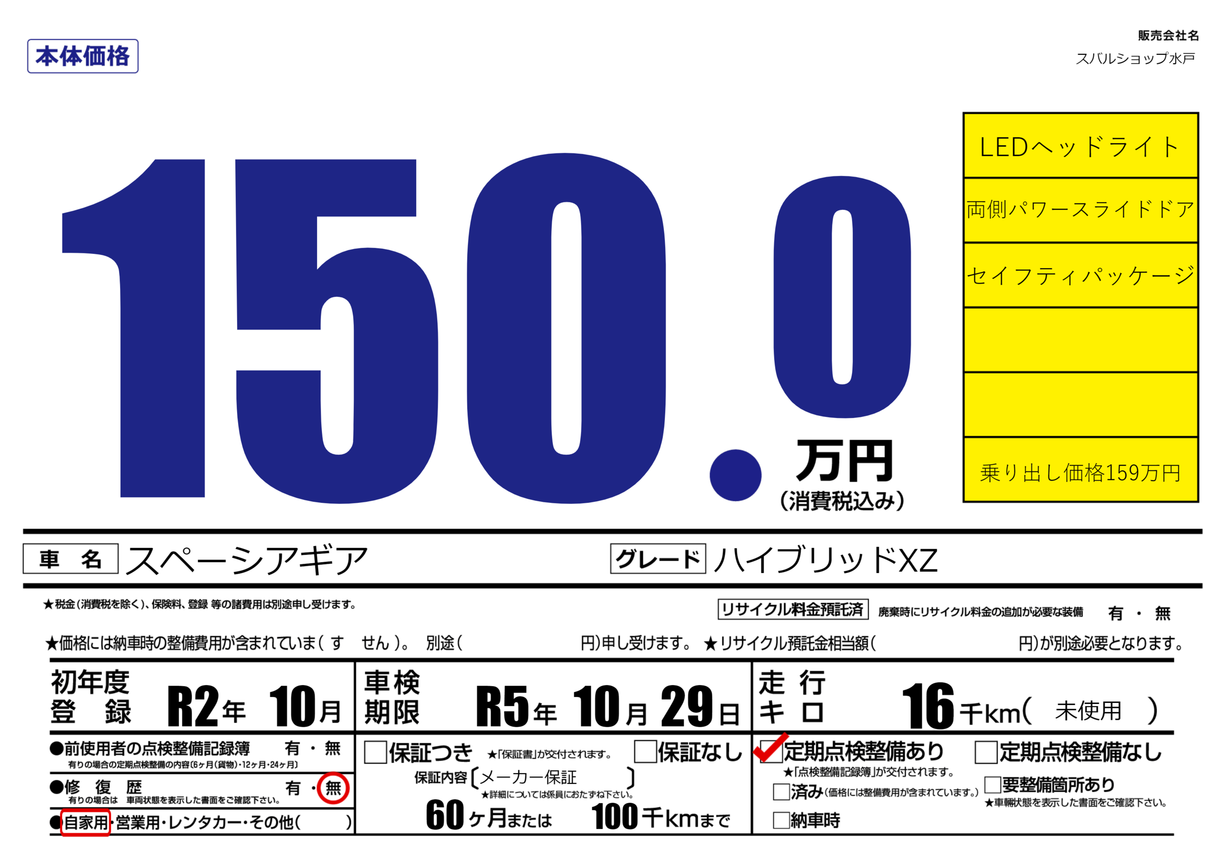 | 走行キロ | 1.6万km | 初年度登録 | R2年10月 |