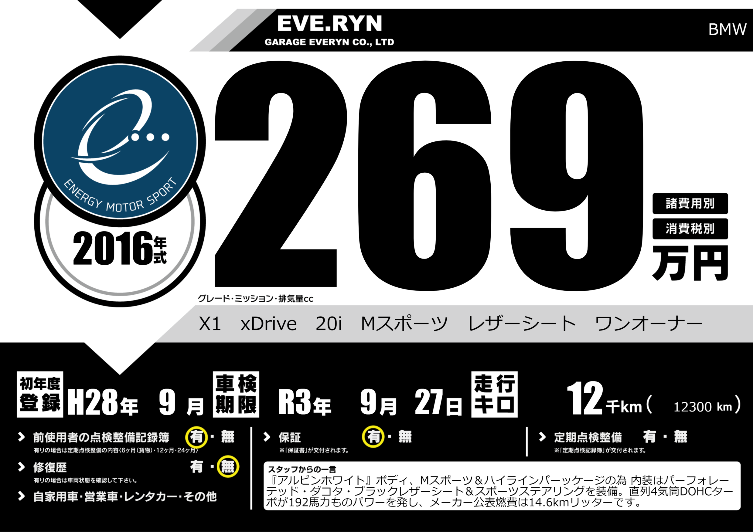 | 車検制限 | R3年 9月 27日 | ||